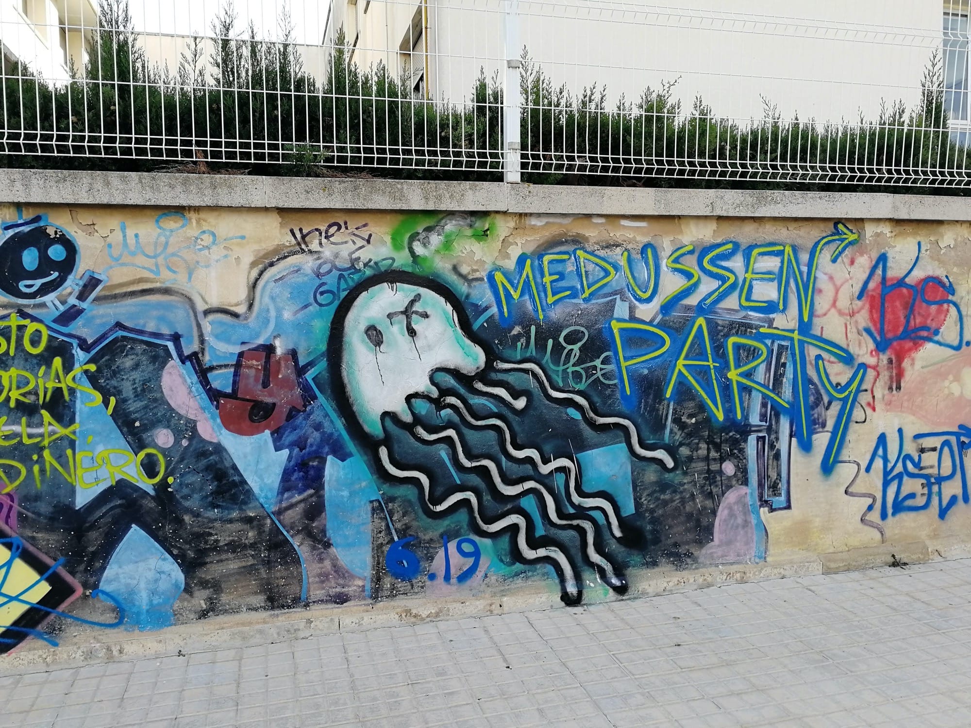 The artwork is of graffiti type. You can admire it in the city of València in Spain and more precisely here : Plaça Num 139 Res Urb, 94, 46017 València, Valencia, Espagne.