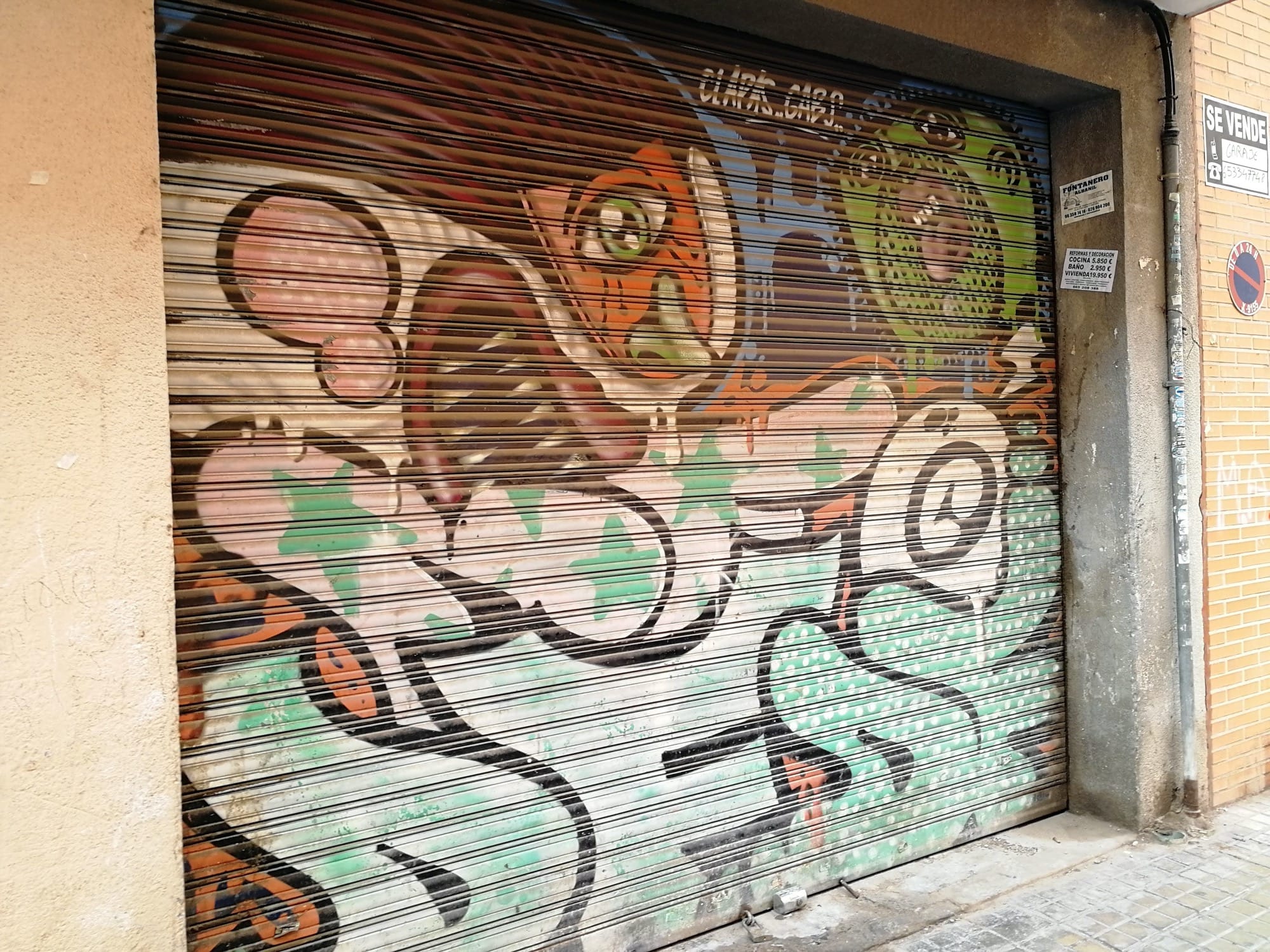 The artwork is of graffiti type. You can admire it in the city of València in Spain and more precisely here : Carrer de Sant Pius X, 15, 46017 València, Valencia, Espagne.