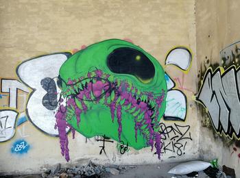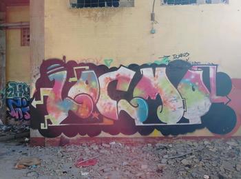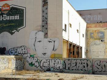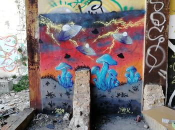 The artwork is of graffiti type. You can admire it in the city of València in Spain and more precisely here : Carrer de Sant Vicent Màrtir, 313, 46017 València, Valencia, Espagne.