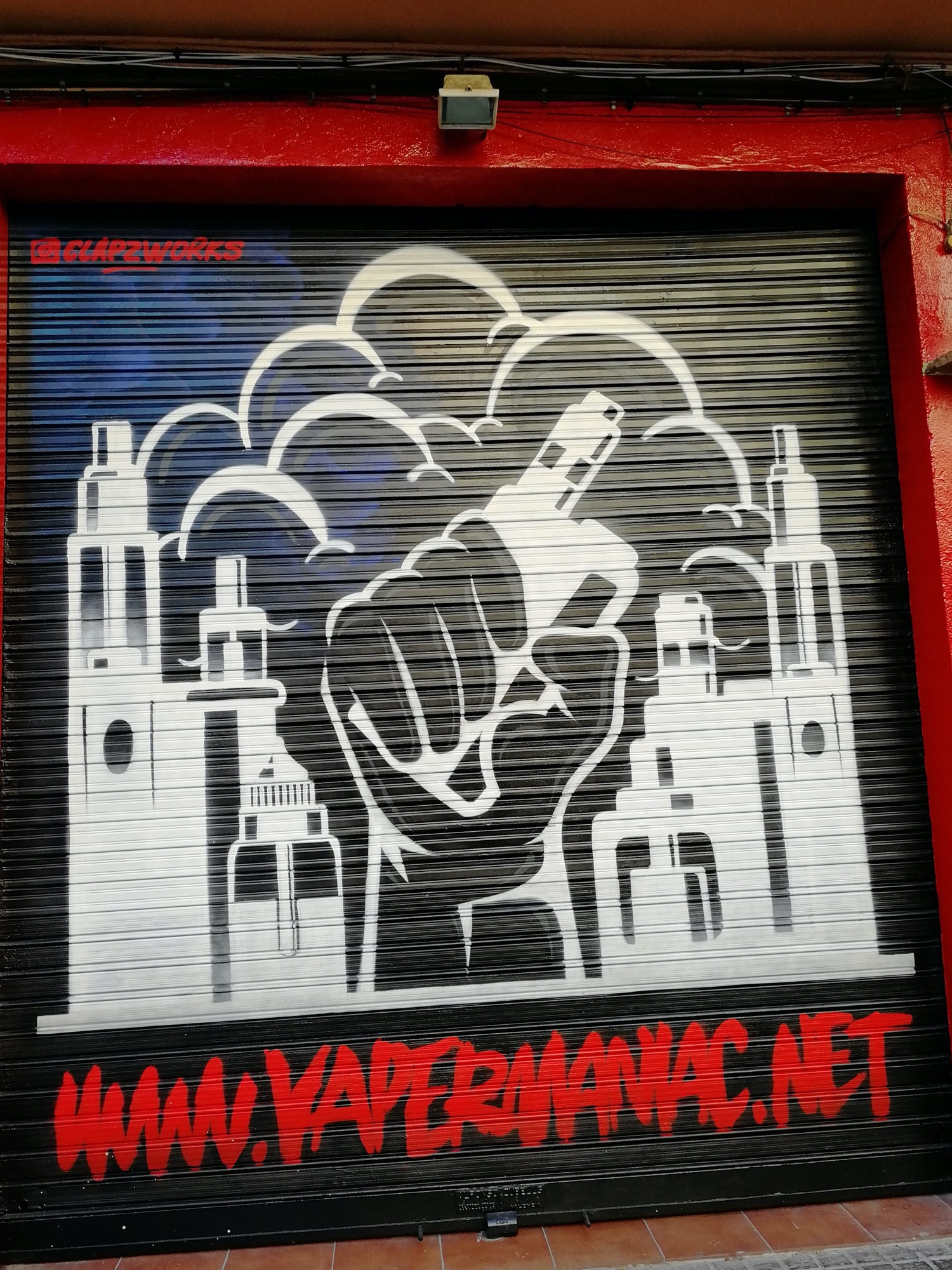 The artwork is of graffiti type. You can admire it in the city of València in Spain and more precisely here : Plaça Santiago Suárez "Santi, 11, 46017 València, Valencia, Espagne.