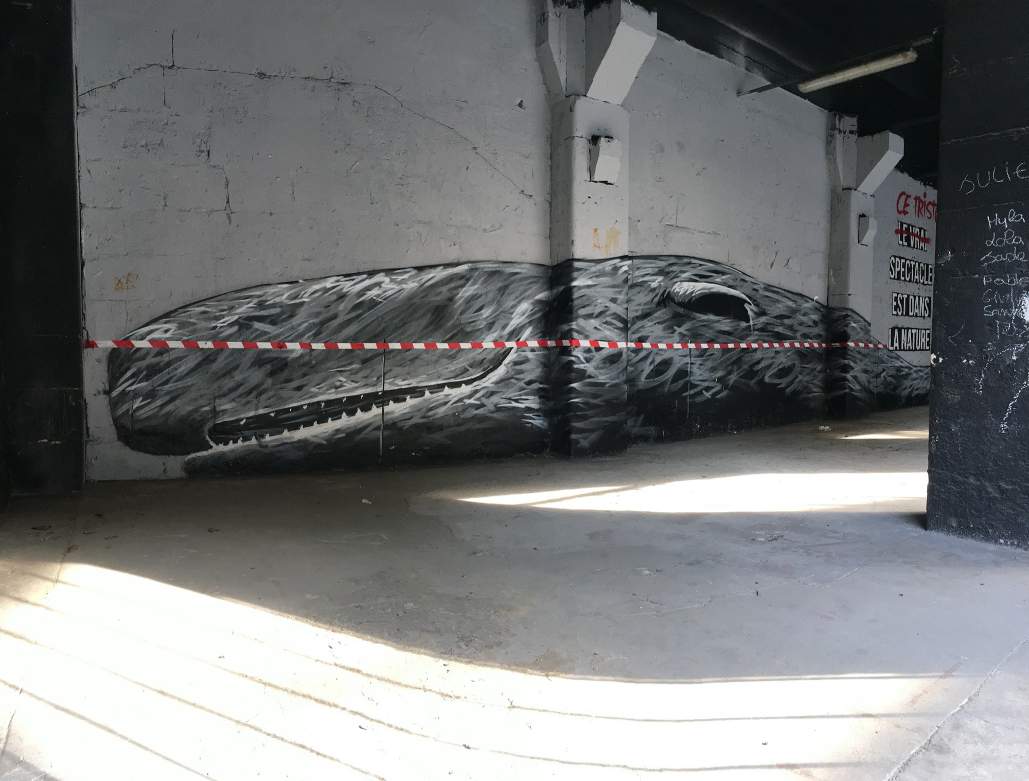 The artwork is of graffiti type. You can admire it in the city of Bordeaux in France and more precisely here : 87 Quai des Queyries, 33100 Bordeaux, France.