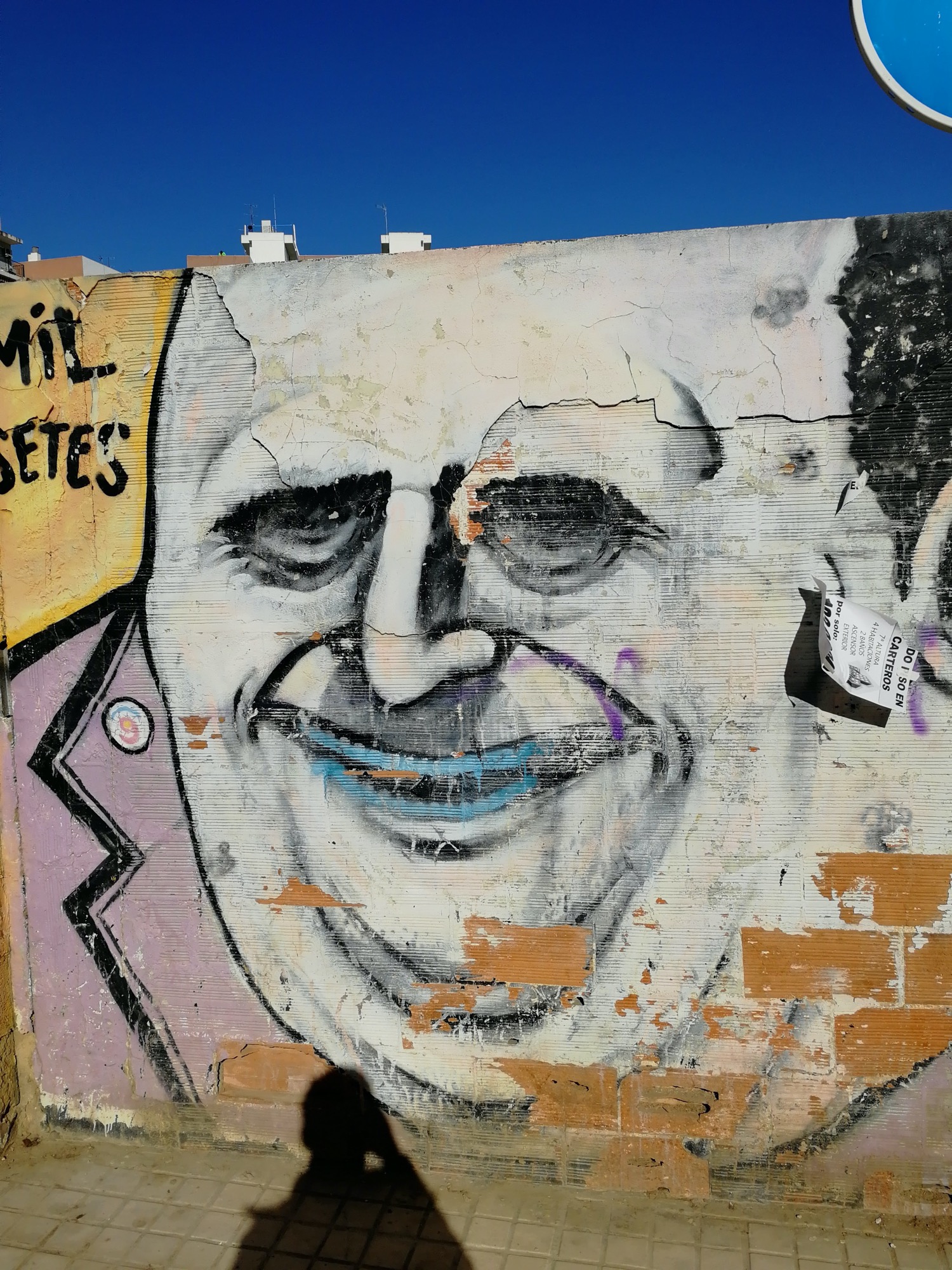 The artwork is of graffiti type. You can admire it in the city of València in Spain and more precisely here : Calle Litógrafo Pascual y Ab, 25B, 46017 Valencia, Espagne.