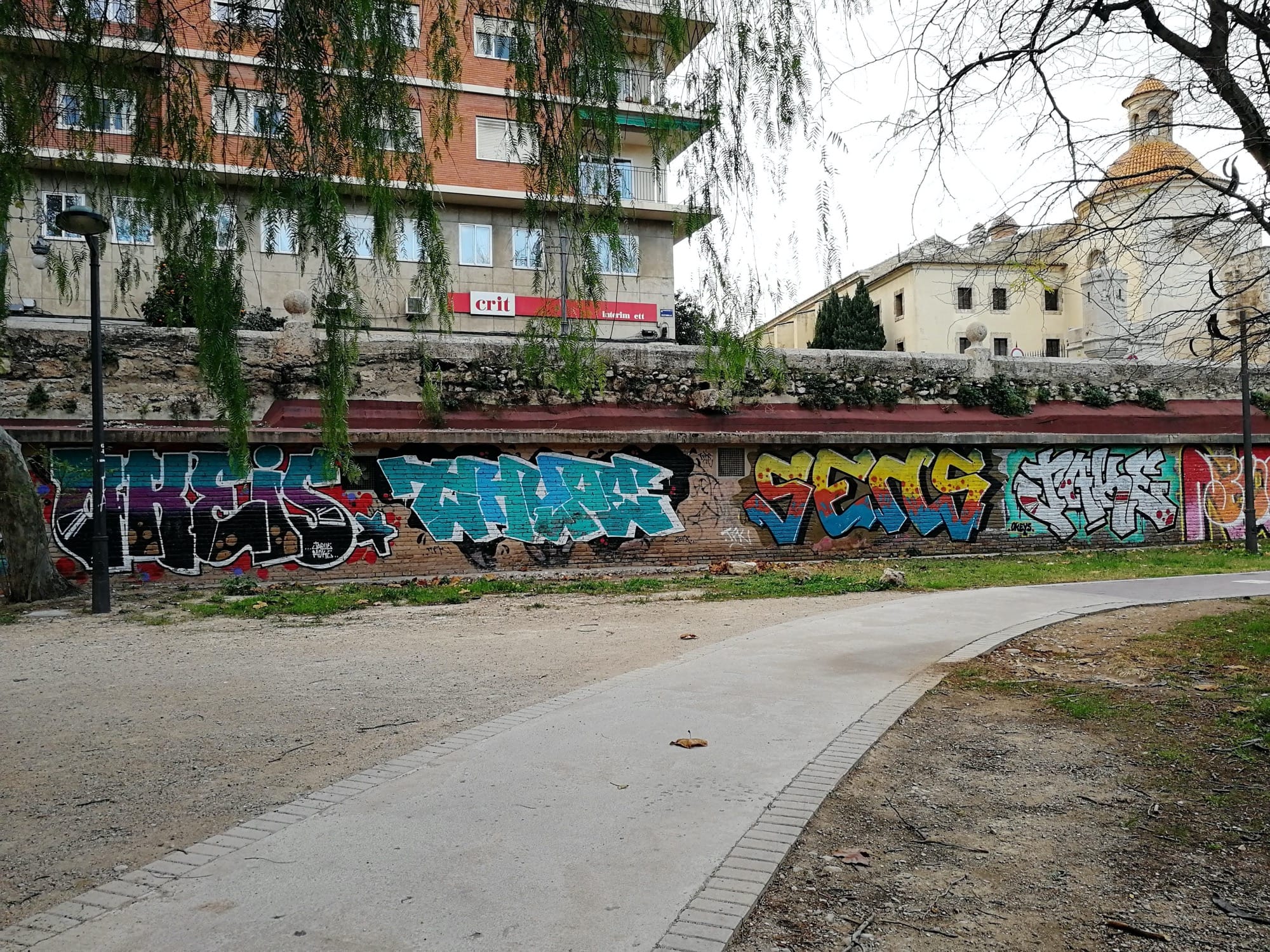 The artwork is of graffiti type. You can admire it in the city of València in Spain and more precisely here : Carrer de Ximénez de Sandoval, 22, 46003 València, Valencia, Espagne.