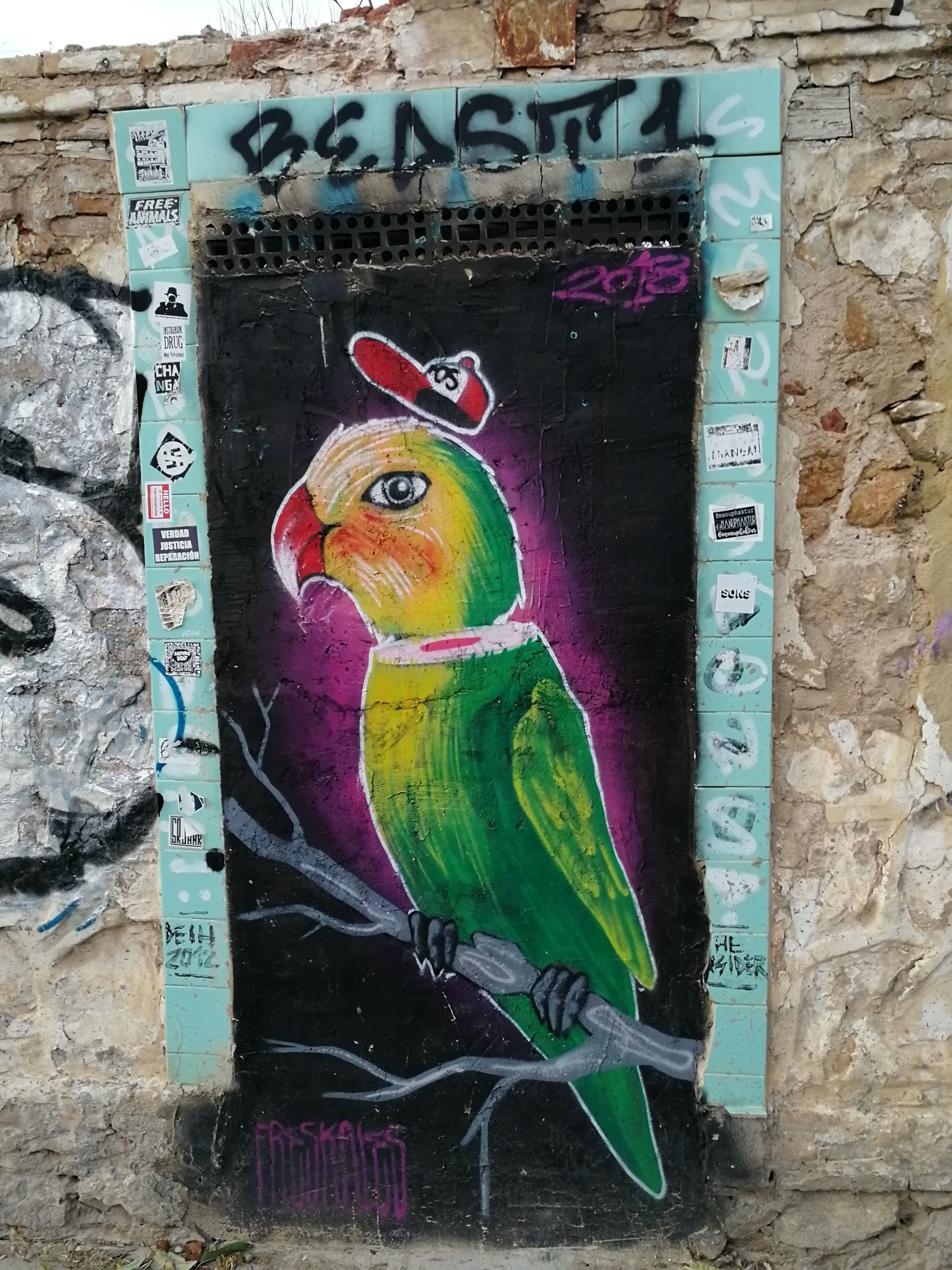 The artwork is of graffiti type. You can admire it in the city of València in Spain and more precisely here : Carrer de la Flora, 8, 46010 València, Valencia, Espagne.