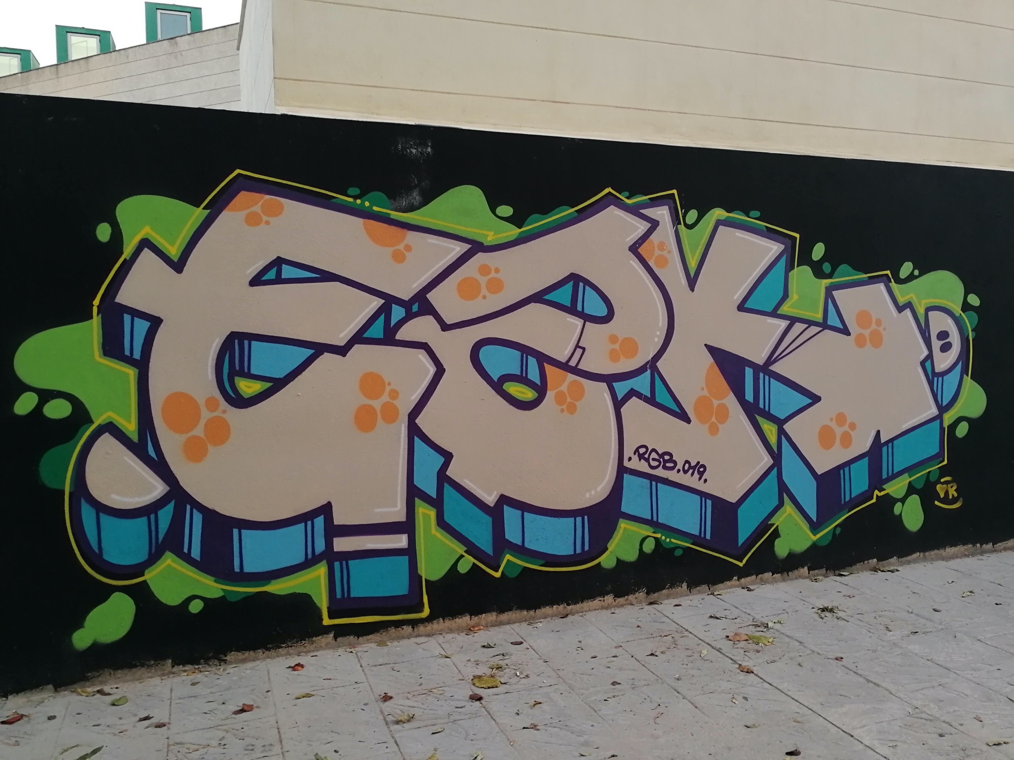 The artwork is of graffiti type. You can admire it in the city of València in Spain and more precisely here : Carrer de la Flora, 8, 46010 València, Valencia, Espagne.