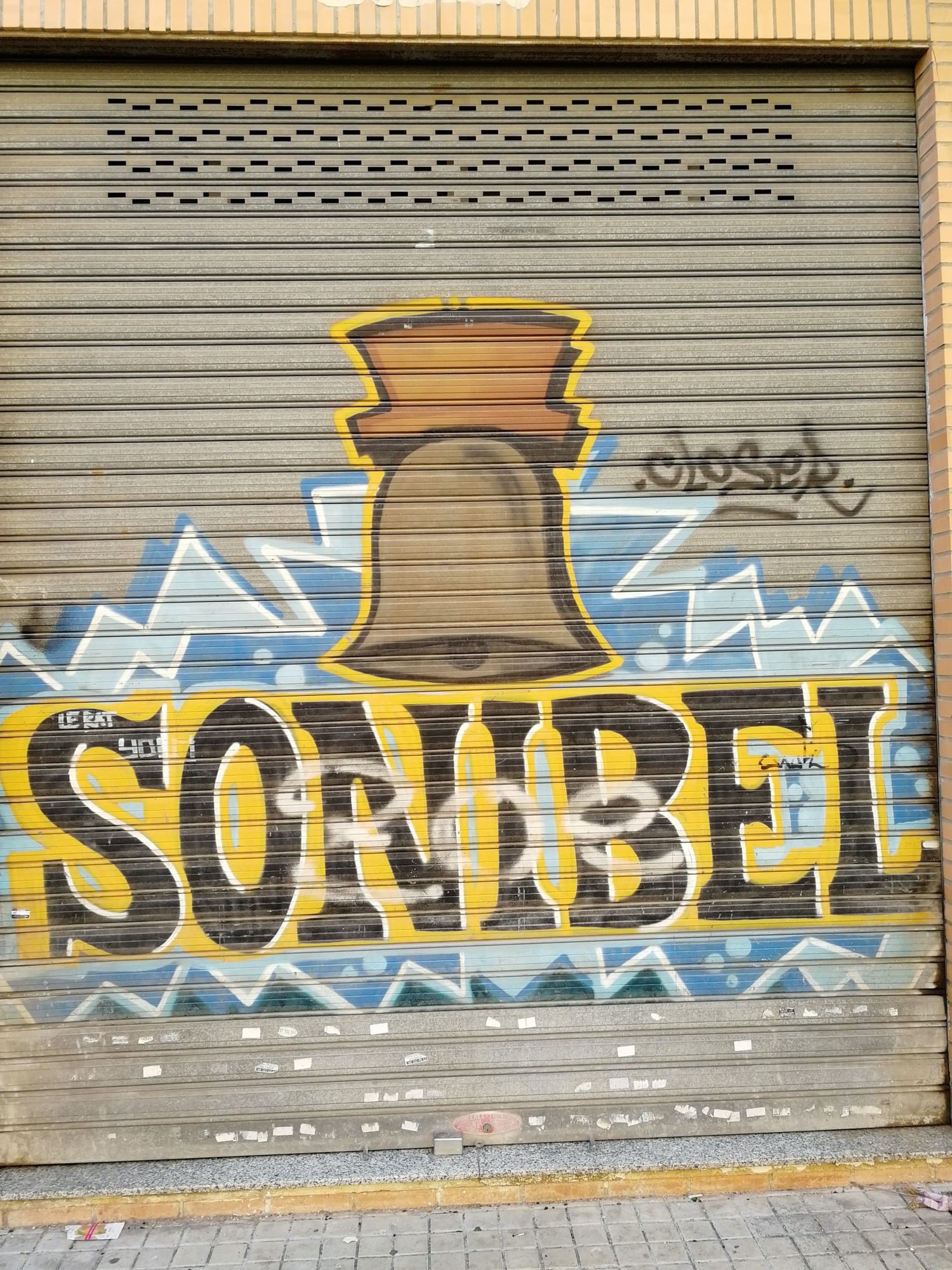 The artwork is of graffiti type. You can admire it in the city of València in Spain and more precisely here : Plaça del Cedre, 10, 46022 València, Valencia, Espagne.