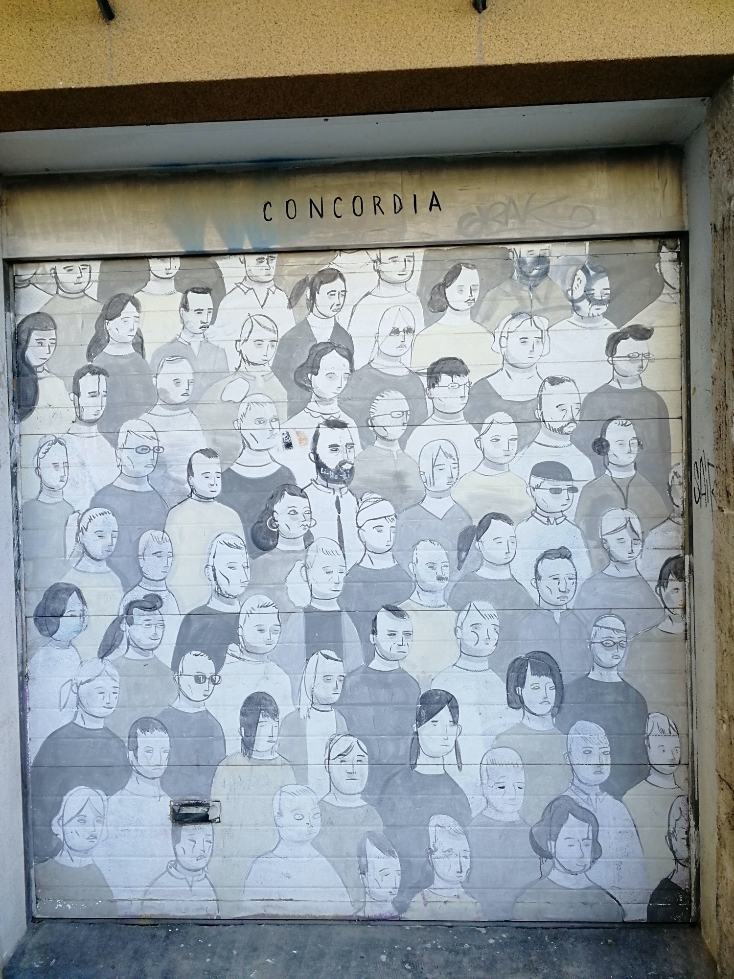 The artwork is of graffiti type. You can admire it in the city of València in Spain and more precisely here : Carrer del Comte de Montornés, 19, 46003 València, Valencia, Espagne.
