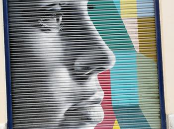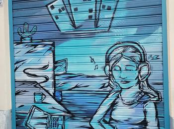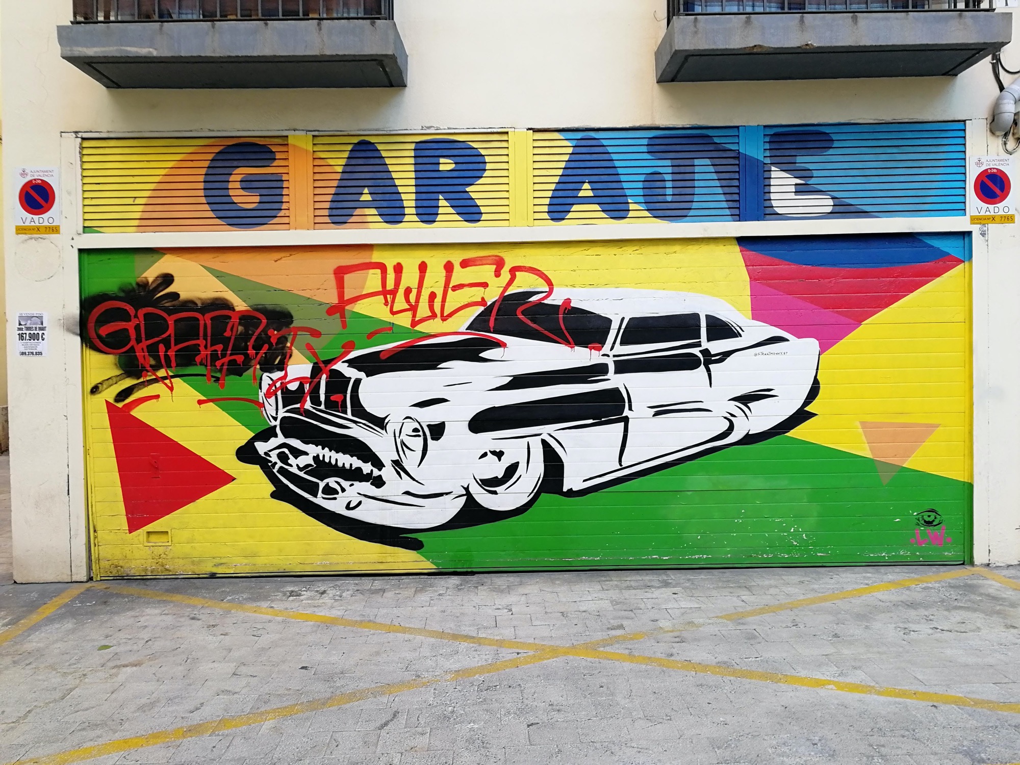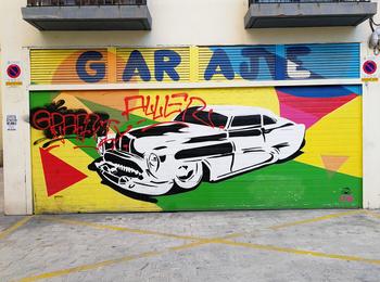 The artwork is of graffiti type. You can admire it in the city of València in Spain and more precisely here : Carrer de Vicent Ximeno, 4, 46003 València, Valencia, Espagne.
