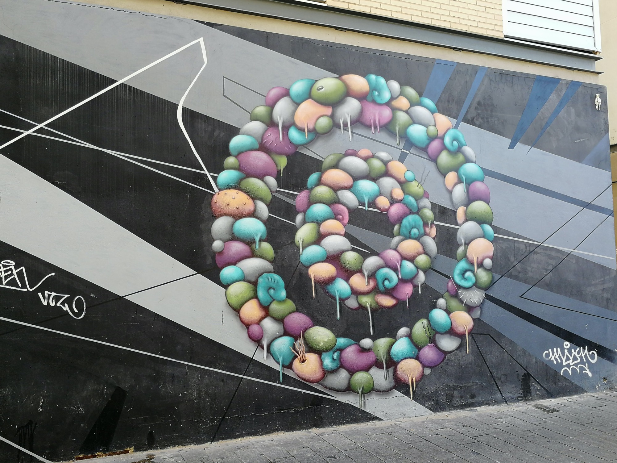 The artwork is of graffiti type. You can admire it in the city of València in Spain and more precisely here : Plaça de Viriat, 5, 46001 València, Valencia, Espagne.