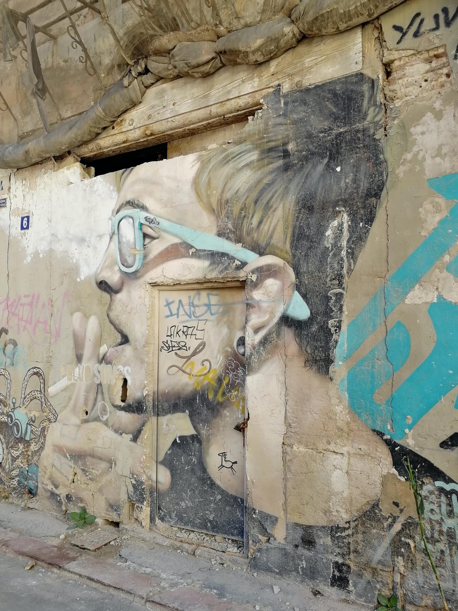 The artwork is of graffiti type. You can admire it in the city of València in Spain and more precisely here : Carrer de la Beata, 12, 46001 València, Valencia, Espagne.