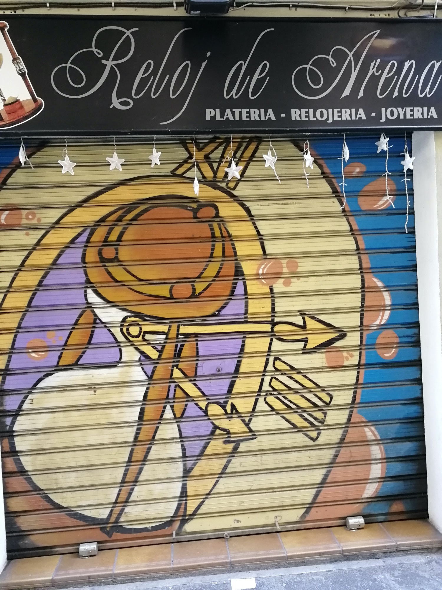 The artwork is of graffiti type. You can admire it in the city of València in Spain and more precisely here : Carrer del Músic Peydró, 12, 46001 València, Valencia, Espagne.