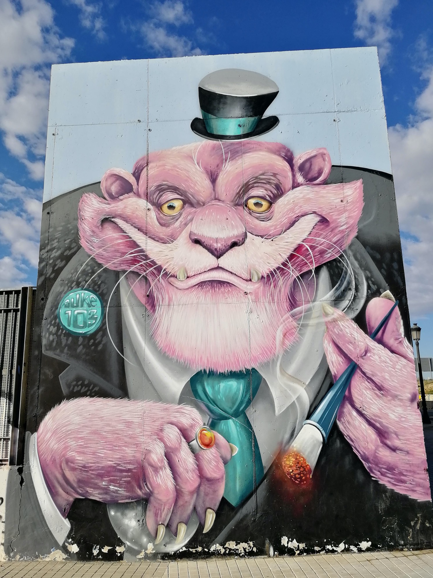 The artwork is of graffiti type. You can admire it in the city of València in Spain and more precisely here : Carrer de la Ciutat de l'Aprenent, 1, 46017 València, Valencia, Espagne.