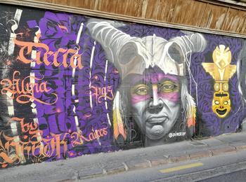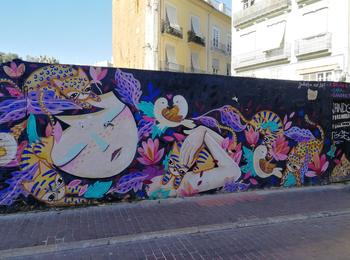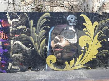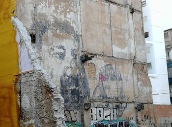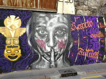 The artwork is of graffiti type. You can admire it in the city of València in Spain and more precisely here : Carrer del Moro Zeid, 7, 46001 València, Valencia, Espagne.