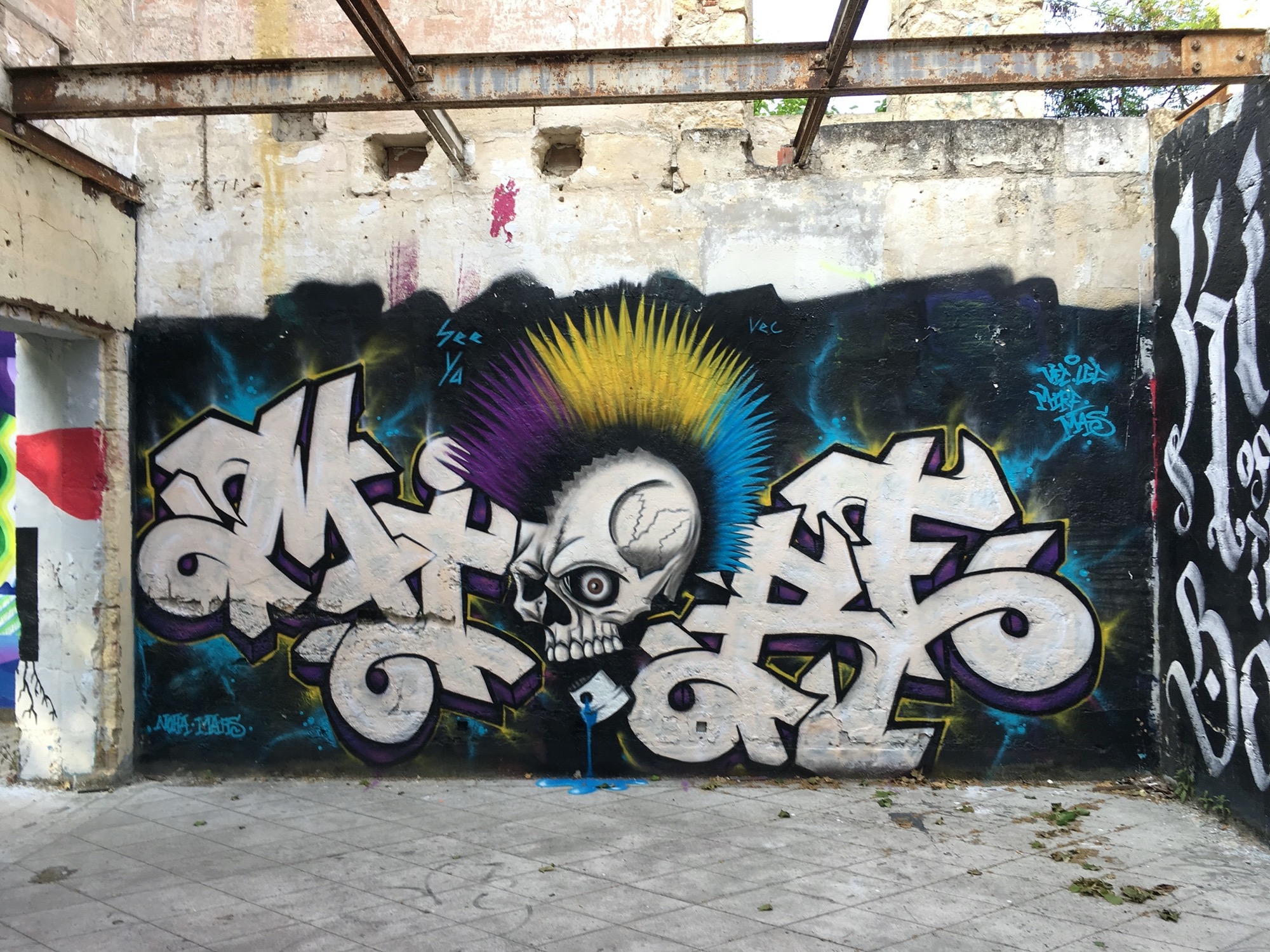 The artwork is of graffiti type. You can admire it in the city of Bordeaux in France and more precisely here : Darwin, bat. sud, 87 Quai des Queyries, 33100 Bordeaux, France.