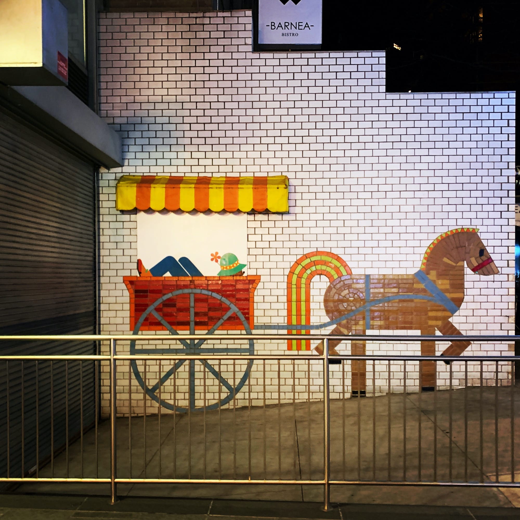 The artwork is of mosaic type. You can admire it in the city of New York in United States and more precisely here : 743 3rd Ave, New York, NY 10017, USA.