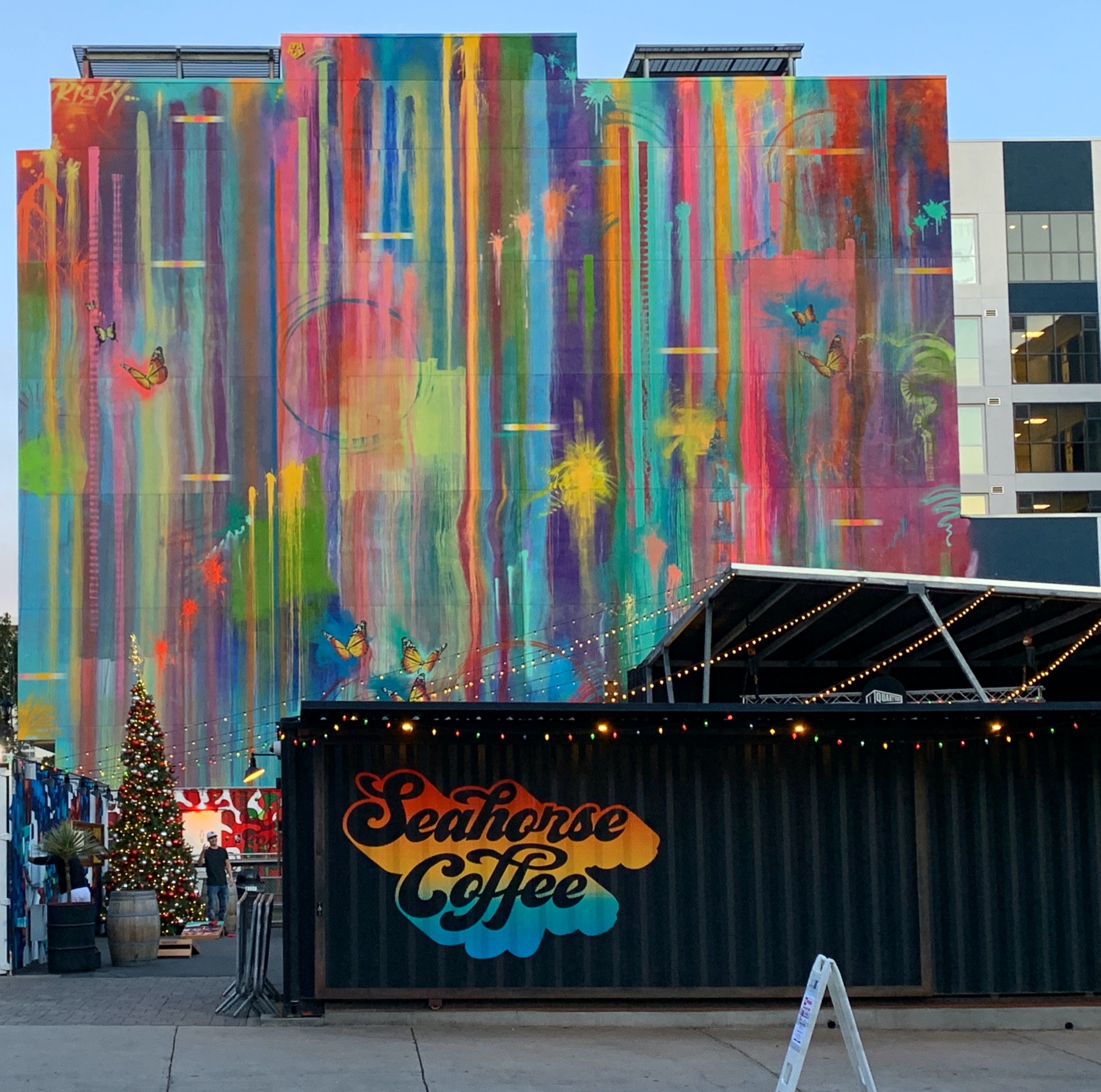 The artwork is of graffiti type. You can admire it in the city of San Diego in United States and more precisely here : 1301 Market St, San Diego, CA 92101, USA.