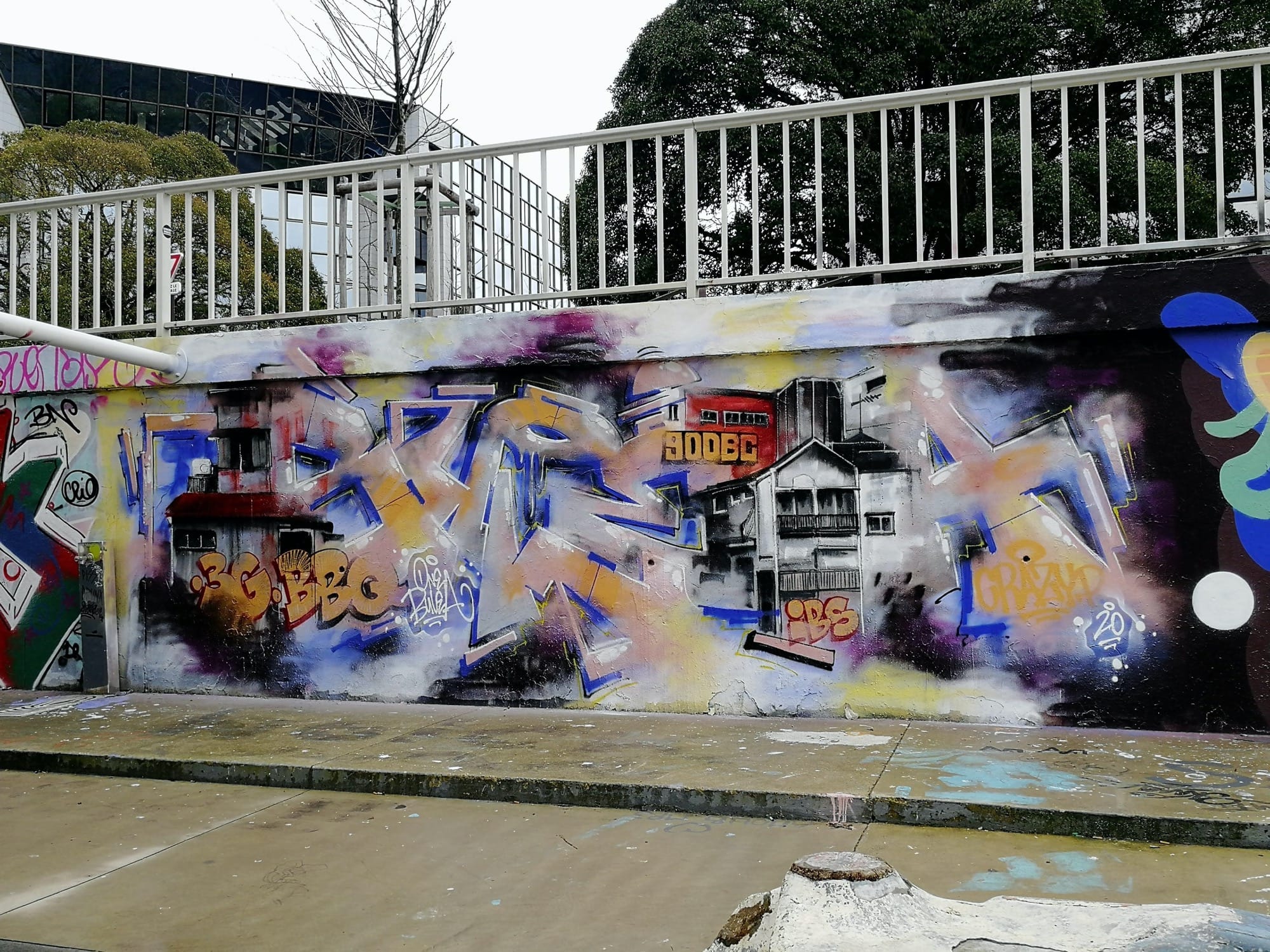 The artwork is of graffiti type. You can admire it in the city of Nantes in France and more precisely here : 51 Quai Magellan, 44000 Nantes, France.