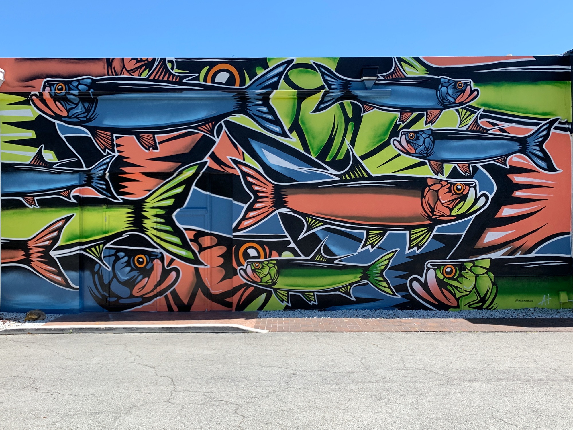 The artwork is of graffiti type. You can admire it in the city of Fort Lauderdale in United States and more precisely here : 1007 E Las Olas Blvd, Fort Lauderdale, FL 33301, USA.