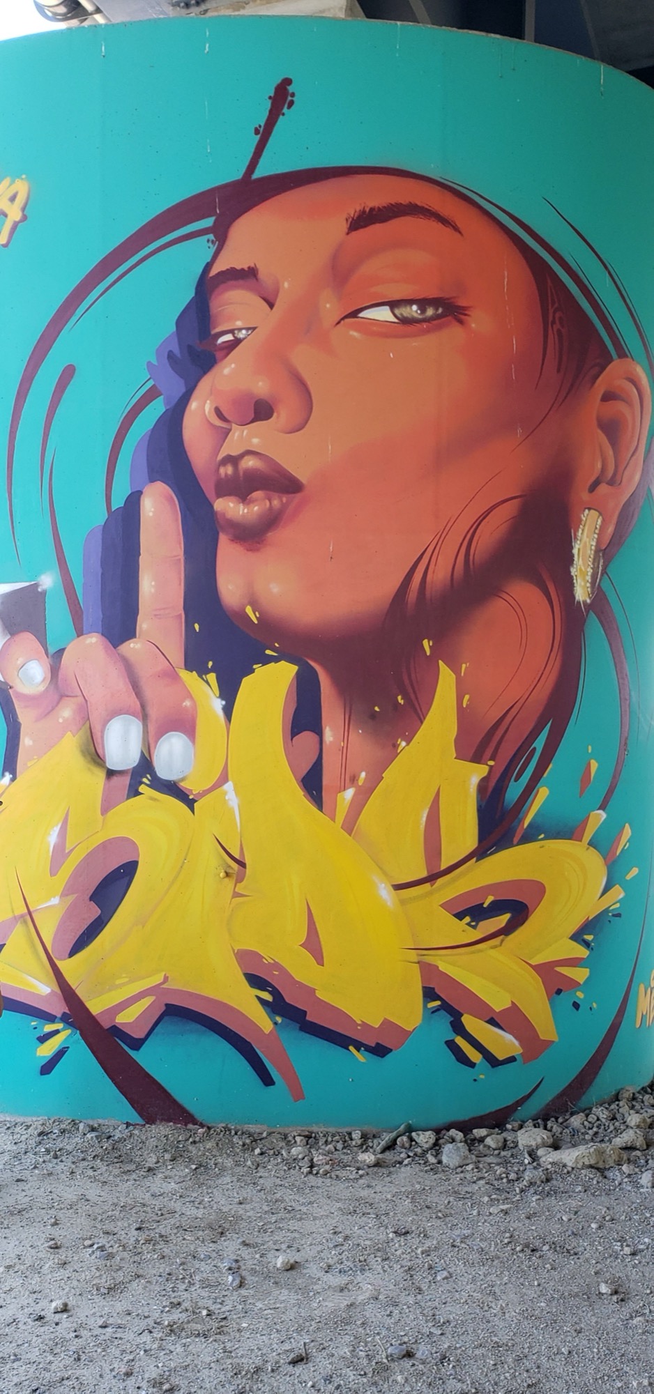 The artwork is of graffiti type. You can admire it in the city of Lattes in France and more precisely here : 9058 Avenue de la Mer, 34970 Lattes, France.