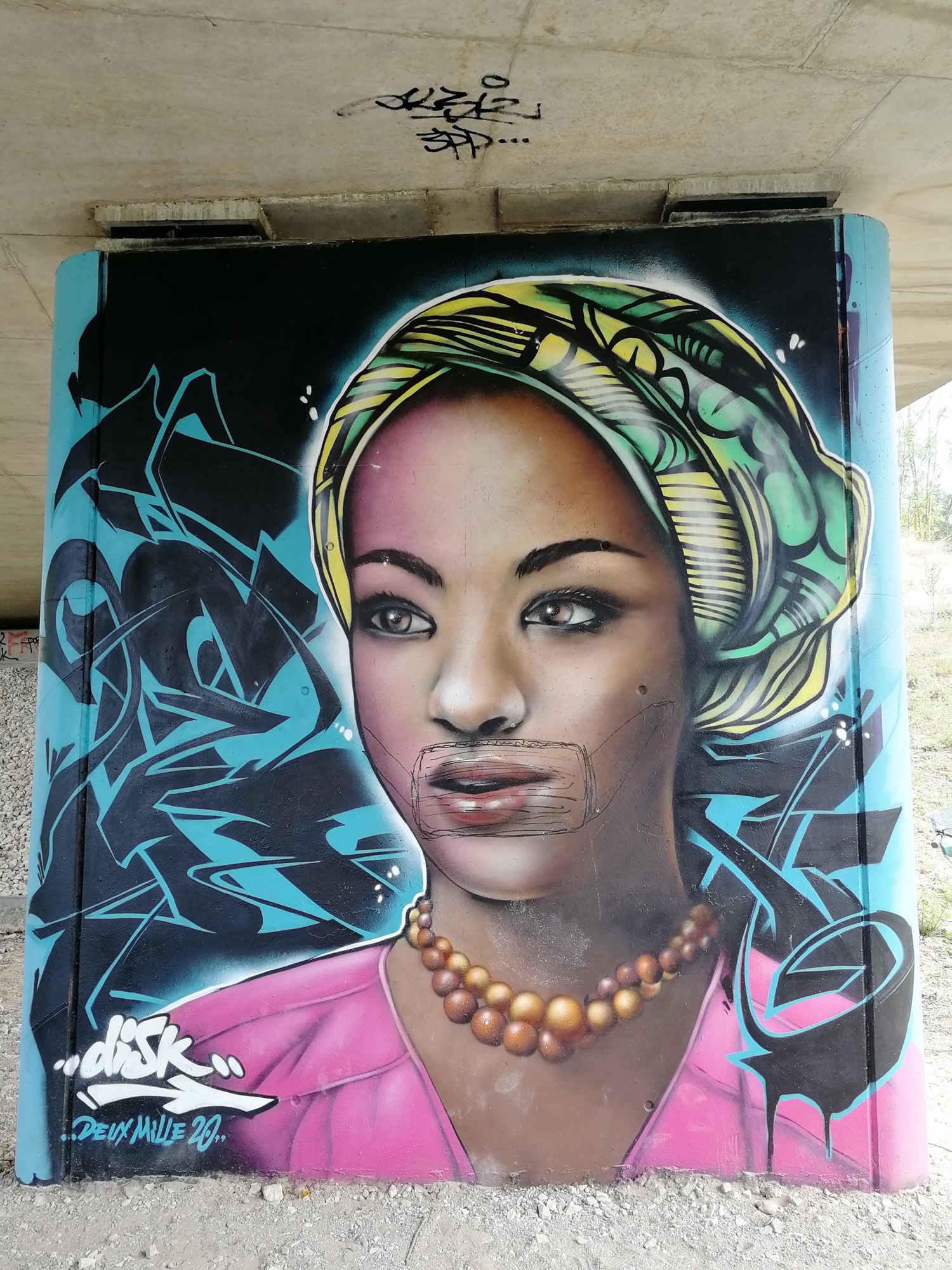 The artwork is of graffiti type. You can admire it in the city of Bourges in France and more precisely here : 36 Chemin de l'Écluse, 18000 Bourges, France.