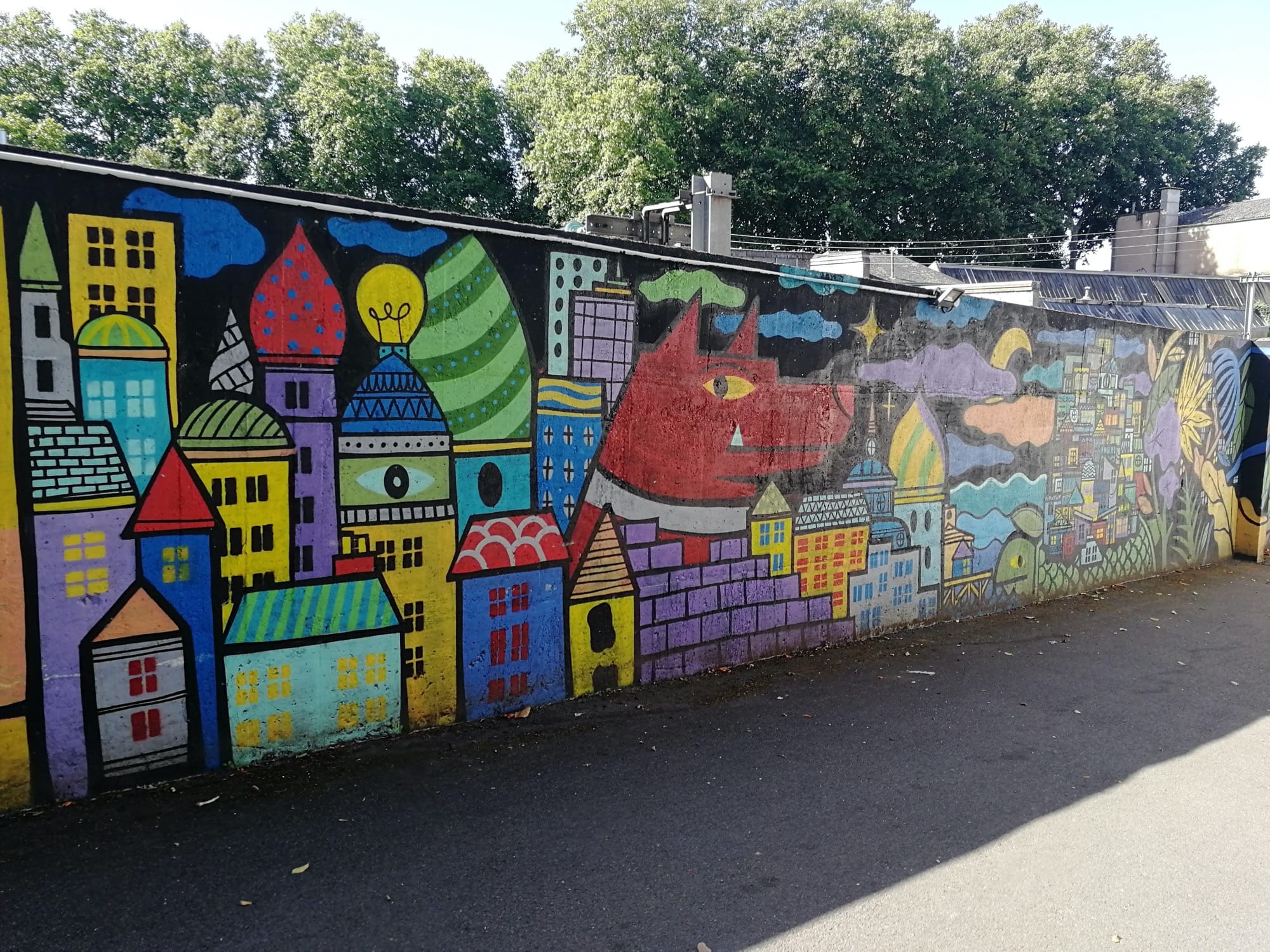 The artwork is of graffiti type. You can admire it in the city of Nantes in France and more precisely here : 14 Boulevard de la Liberté, 44100 Nantes, France.