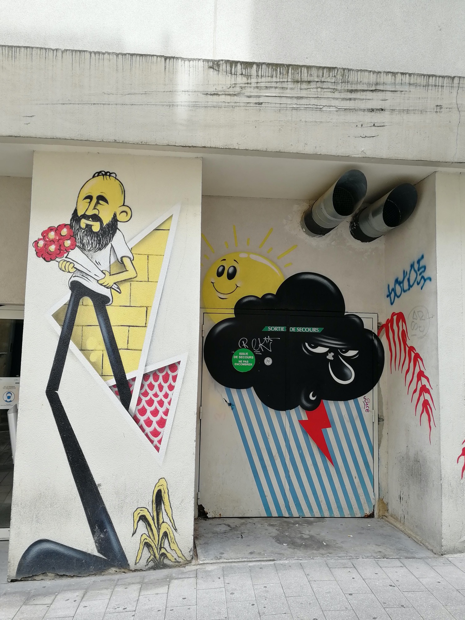 The artwork is of graffiti type. You can admire it in the city of Angers in France and more precisely here : 9 Rue Cordelle, 49100 Angers, France.