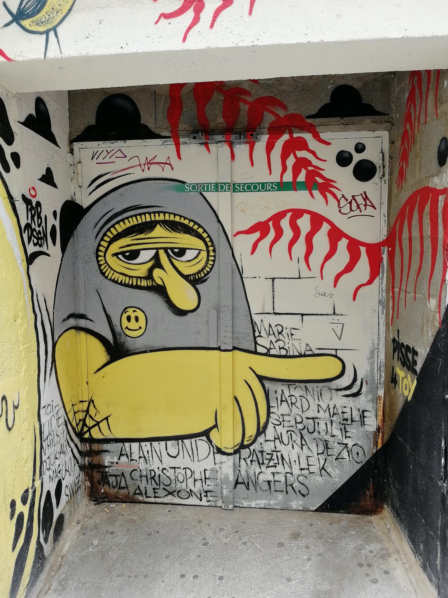 The artwork is of graffiti type. You can admire it in the city of Angers in France and more precisely here : 9 Rue Cordelle, 49100 Angers, France.