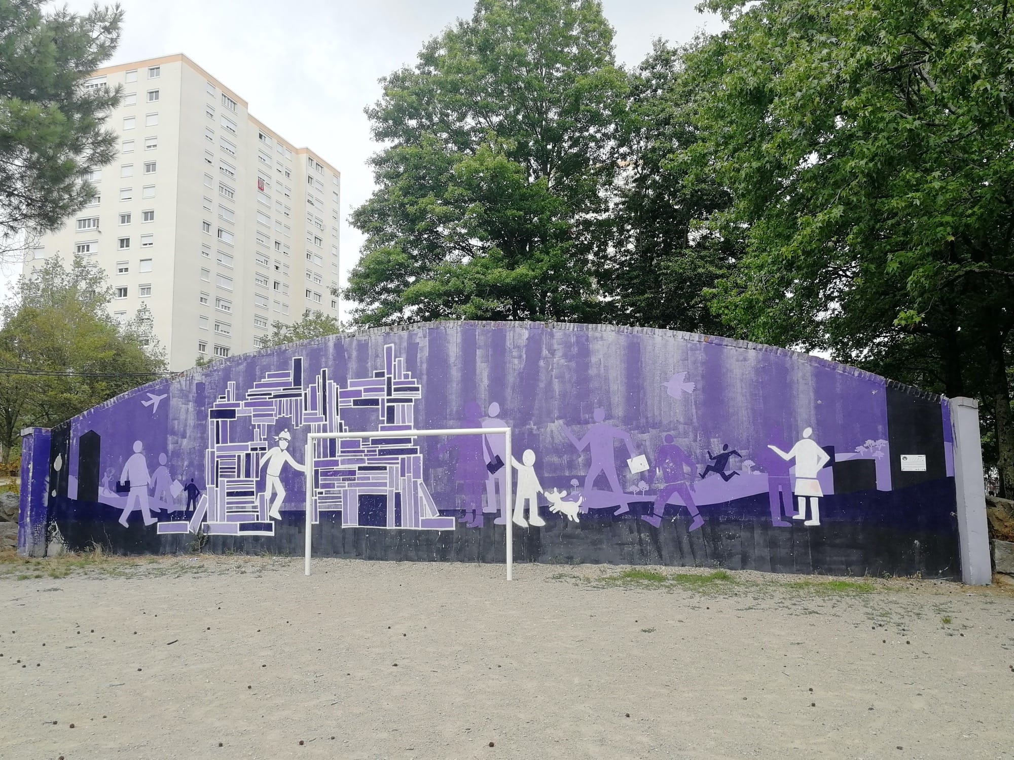 The artwork is of graffiti type. You can admire it in the city of Nantes in France and more precisely here : 2 Rue Samuel de Champlain, 44300 Nantes, France.