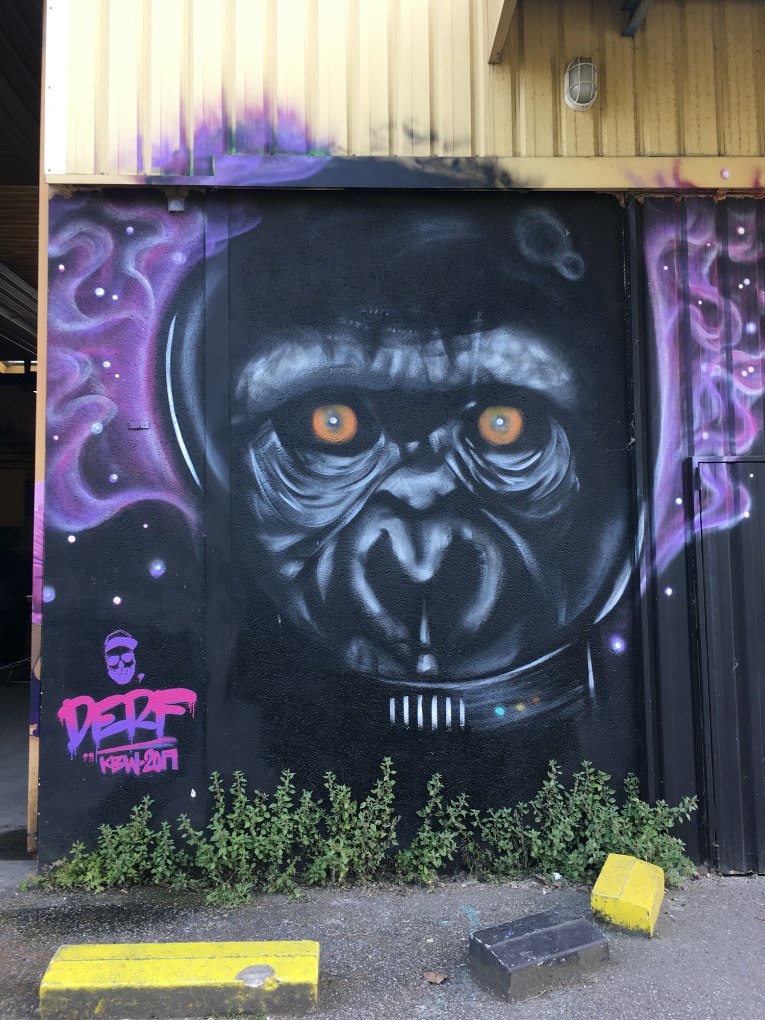 The artwork is of graffiti type. You can admire it in the city of Bordeaux in France and more precisely here : Bâtiment 2, Darwin Ecosystème, 87 Quai des Queyries, 33100 Bordeaux, France.