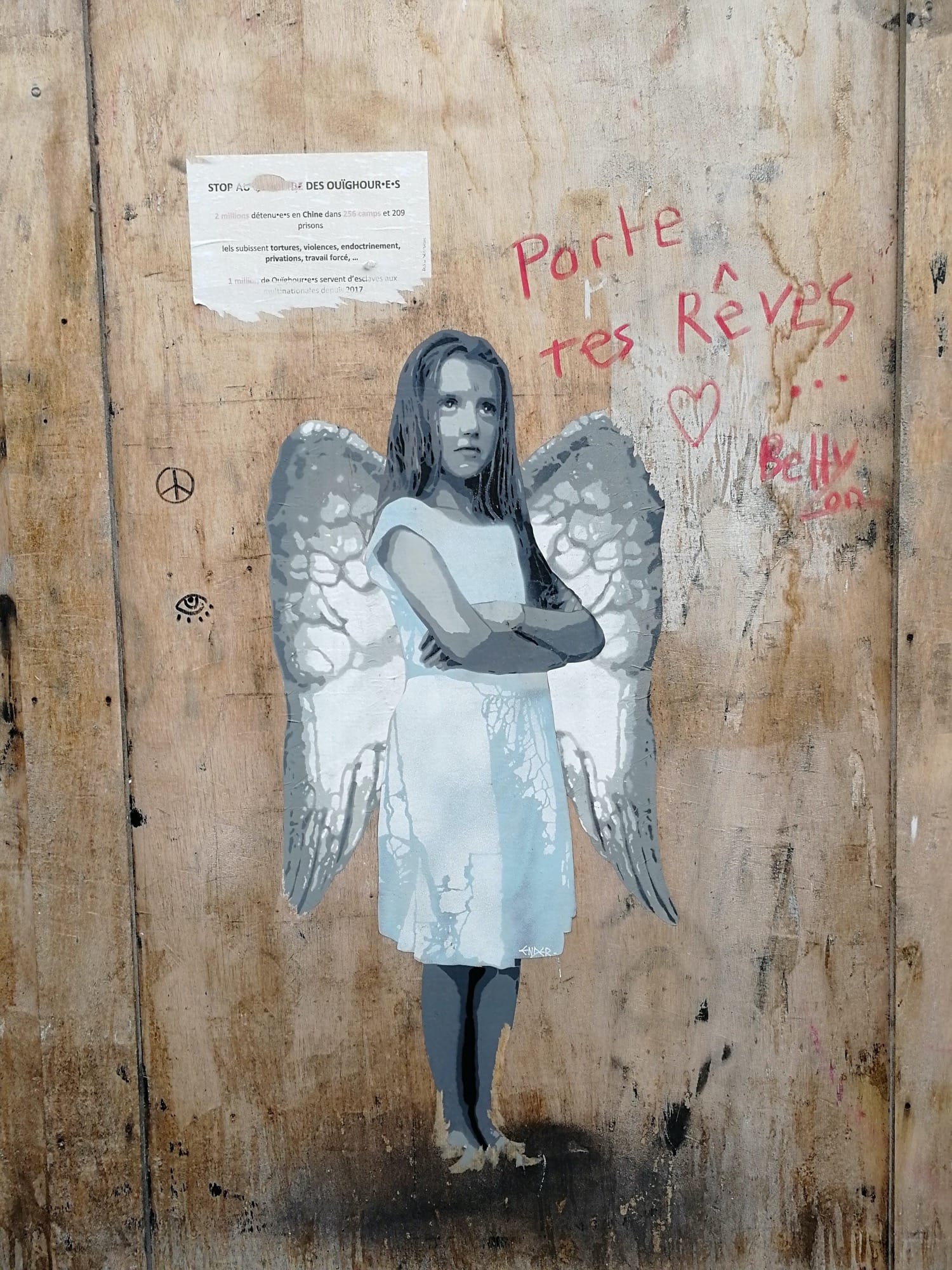 The artwork is of graffiti type. You can admire it in the city of Saint-Brieuc in France and more precisely here : 11 Rue Houvenagle, 22000 Saint-Brieuc, France.
