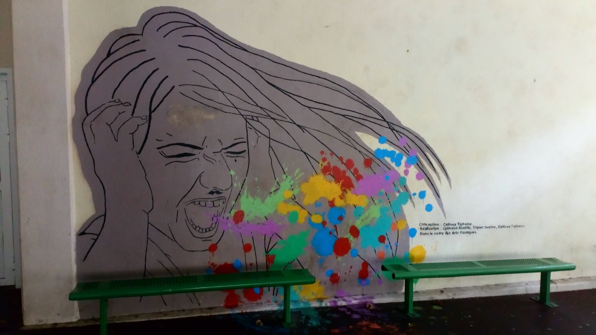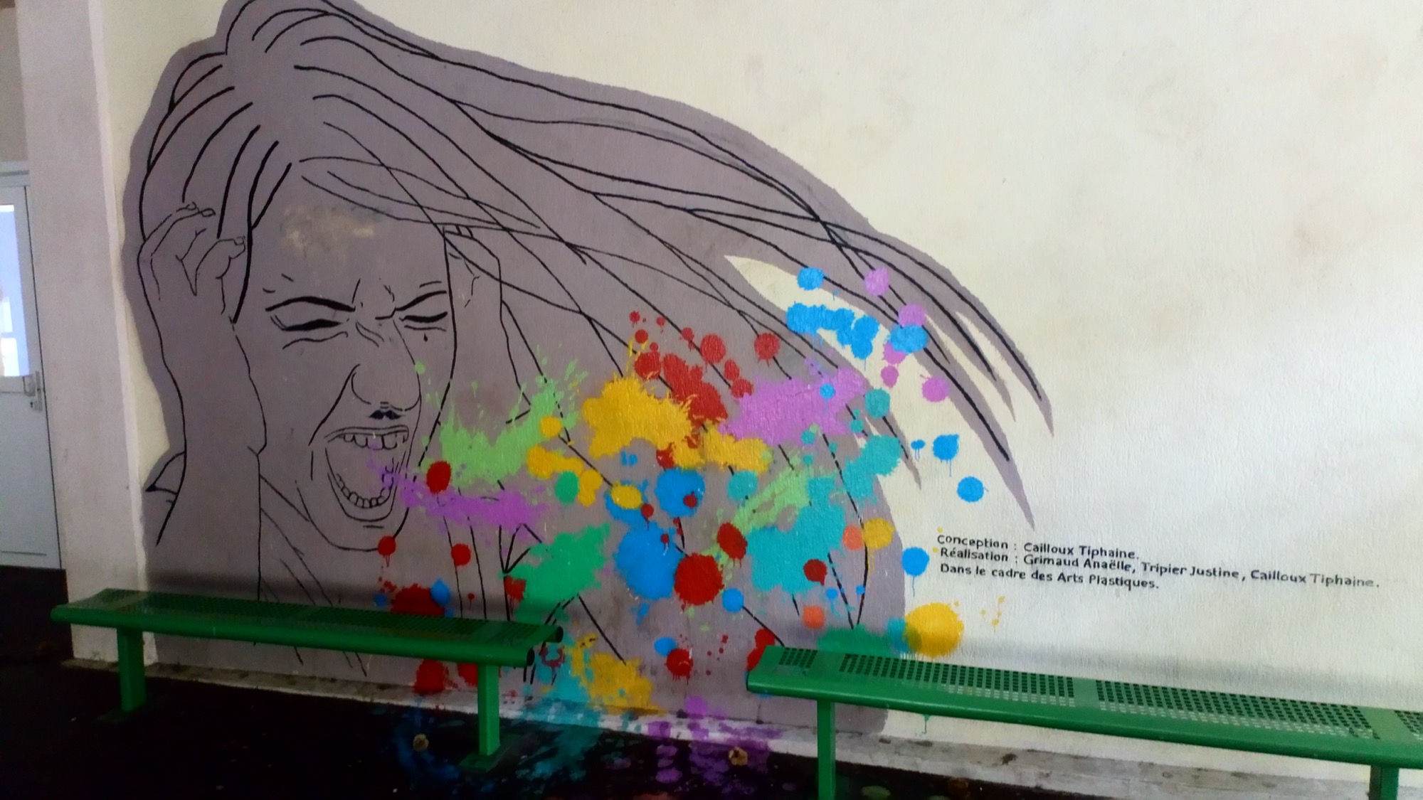 The artwork Tag du Lycée Rabelais is of graffiti type. You can admire it in the city of Meudon in France and more precisely here : 6 rue Georges Langrognet.