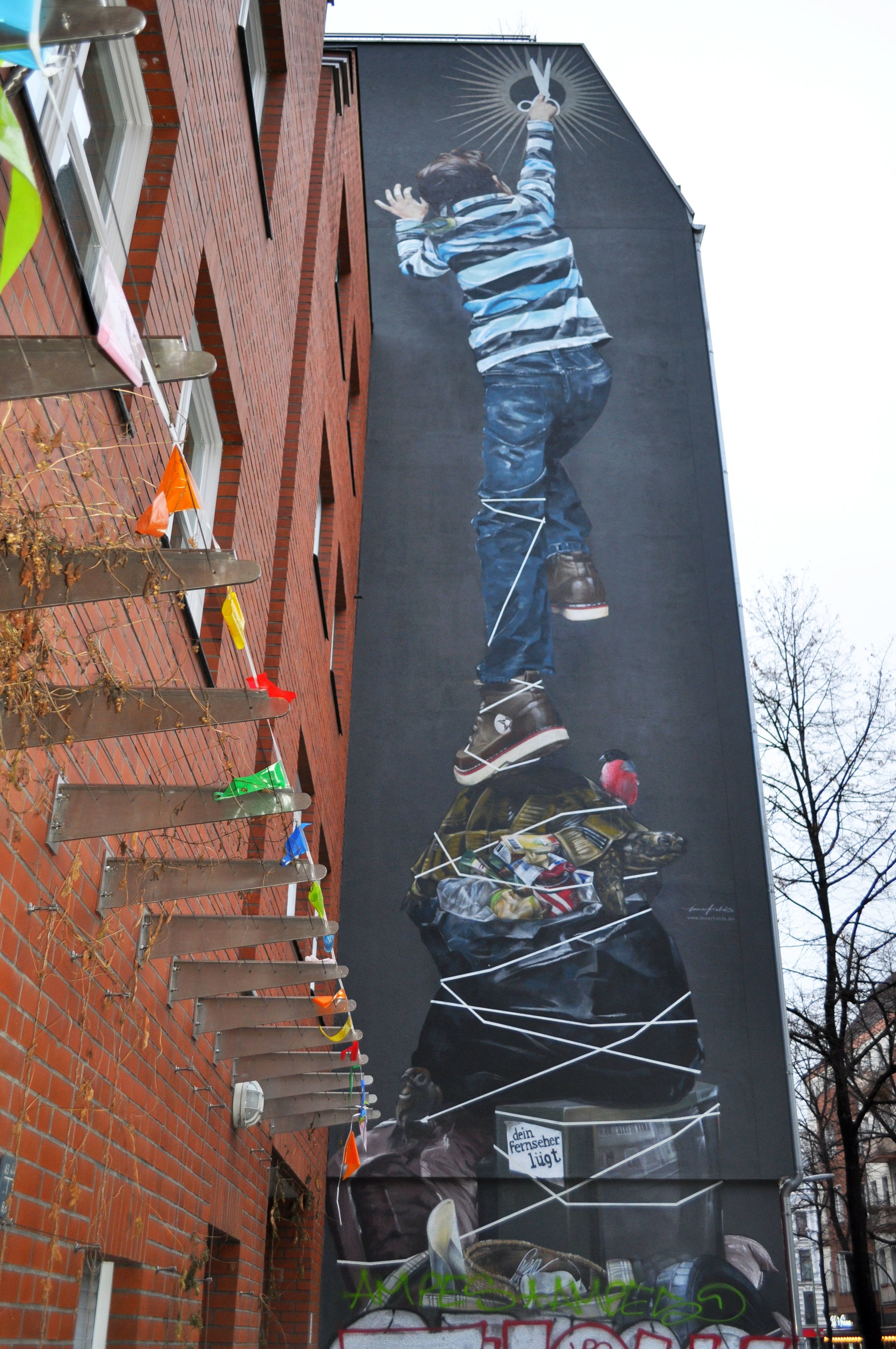 The artwork is of graffiti type. You can admire it in the city of Berlin in Germany and more precisely here : 71 Reuterstraße, 12043 Berlin, Germany.