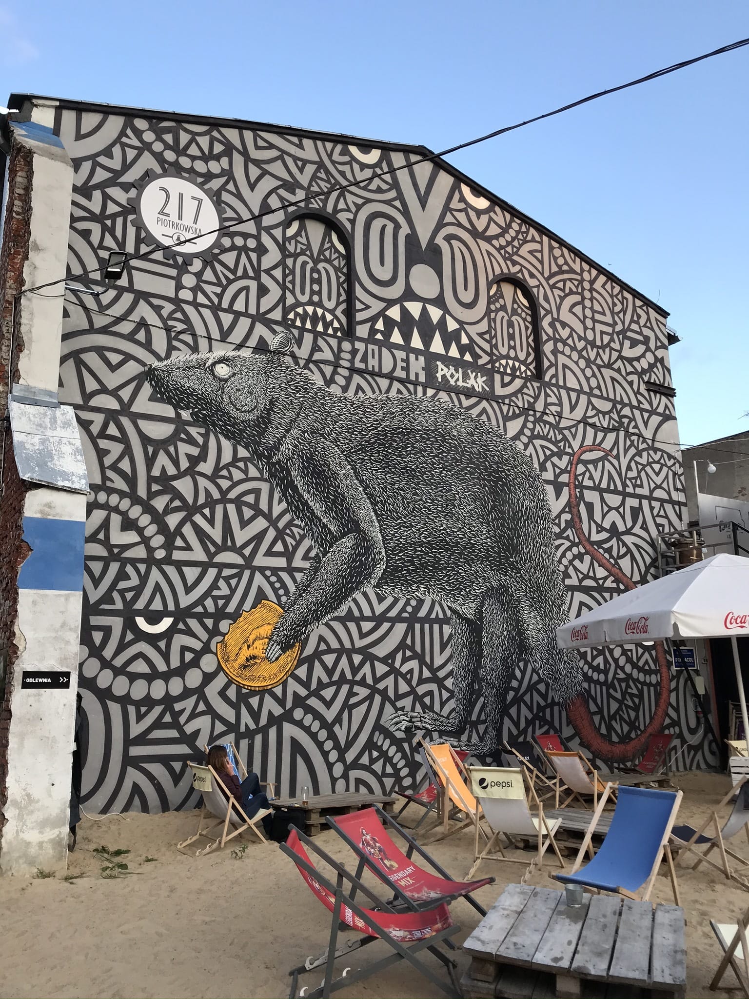 The artwork is of graffiti type. You can admire it in the city of Łódź in Poland and more precisely here : al. Tadeusza Kościuszki 132, 90-451 Łódź, Poland.