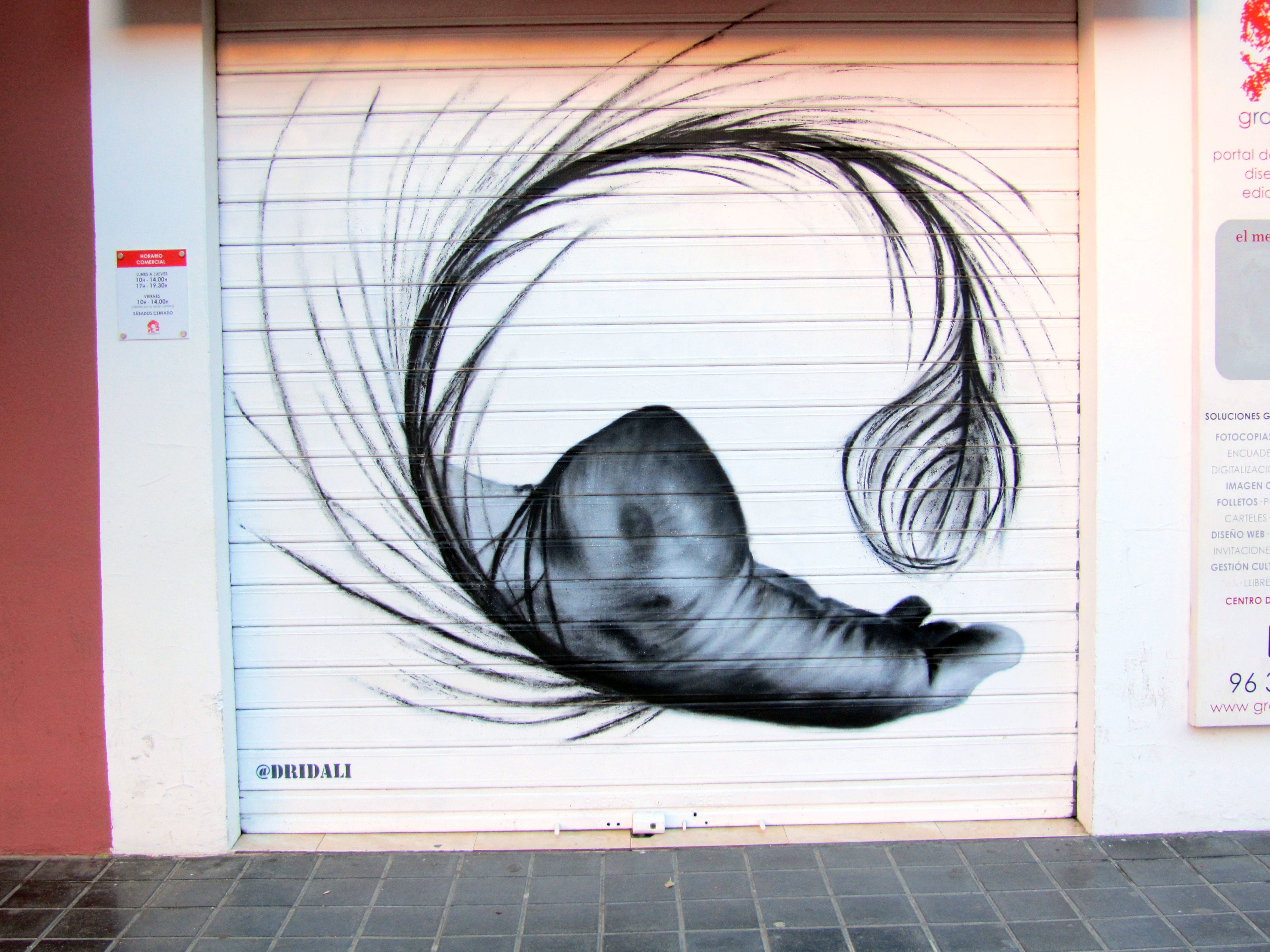 The artwork is of graffiti type. You can admire it in the city of València in Spain and more precisely here : 1 Carrer de Beethoven, 46017 València, Spain.