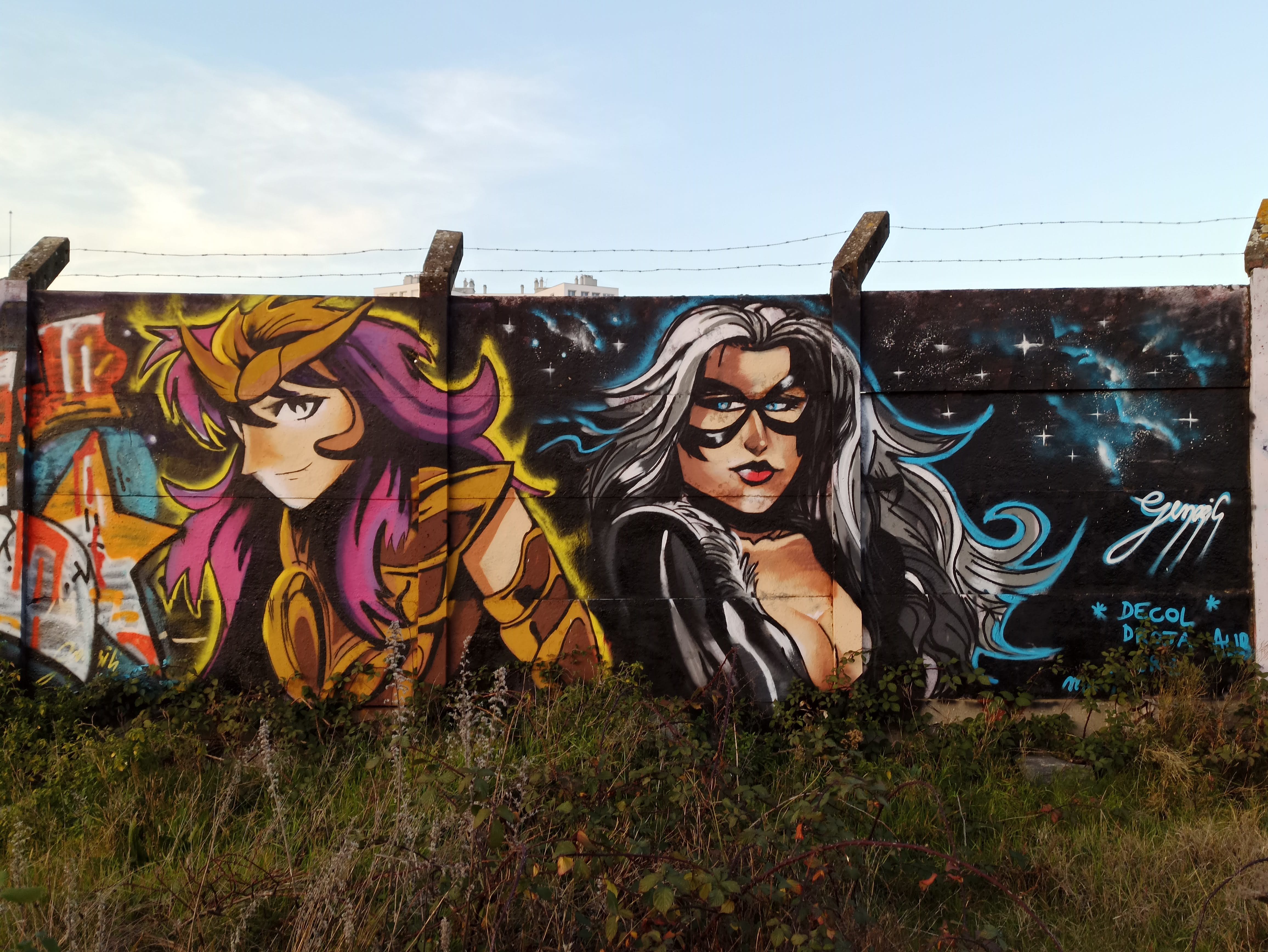The artwork is of graffiti type. You can admire it in the city of Nantes in France and more precisely here : 33 Boulevard Benoni Goullin, 44200 Nantes, France.