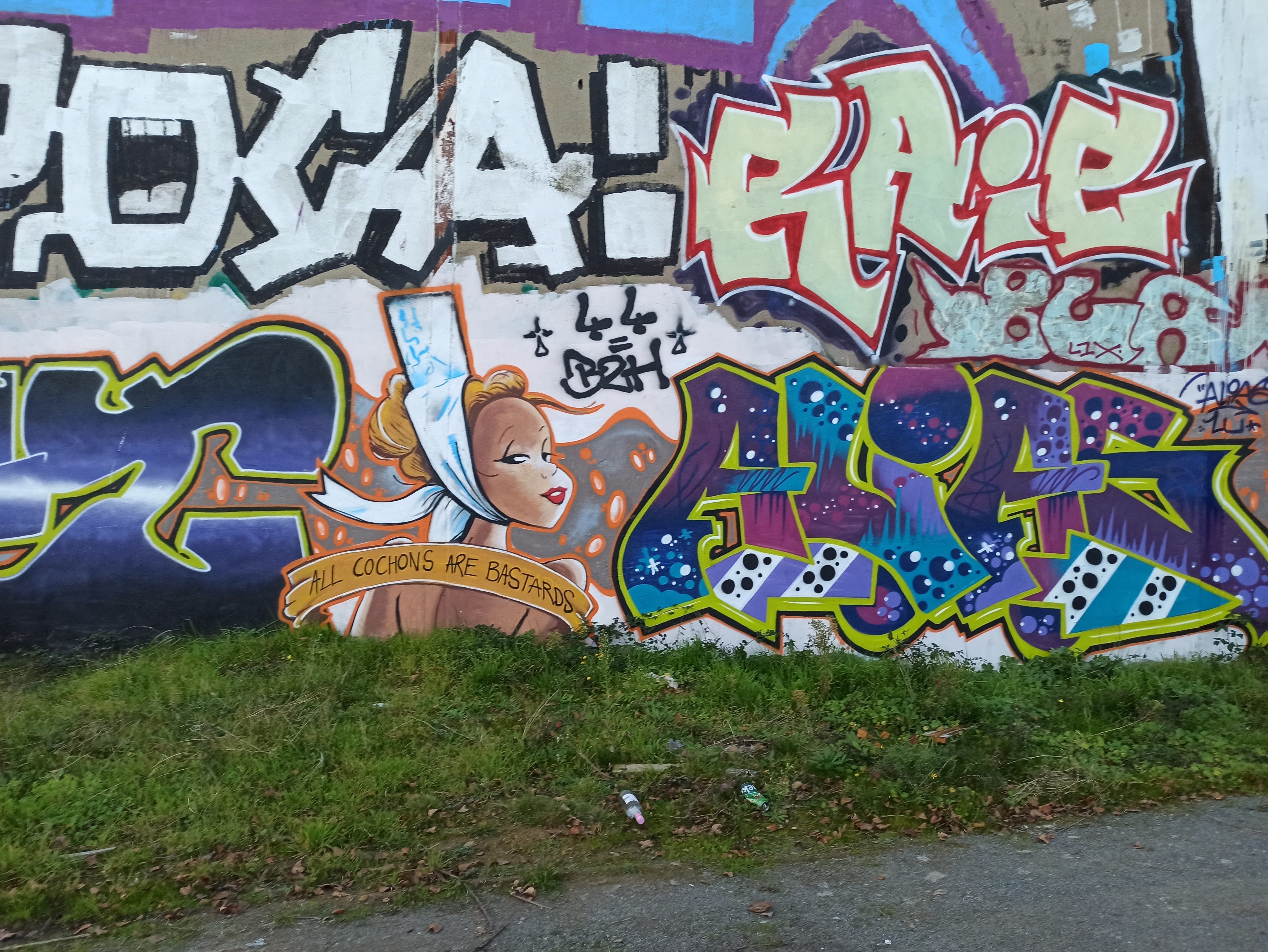 The artwork is of graffiti type. You can admire it in the city of Nantes in France and more precisely here : Cheminée Beghin-Say, 45 Boulevard Benoni Goullin, 44200 Nantes, France.