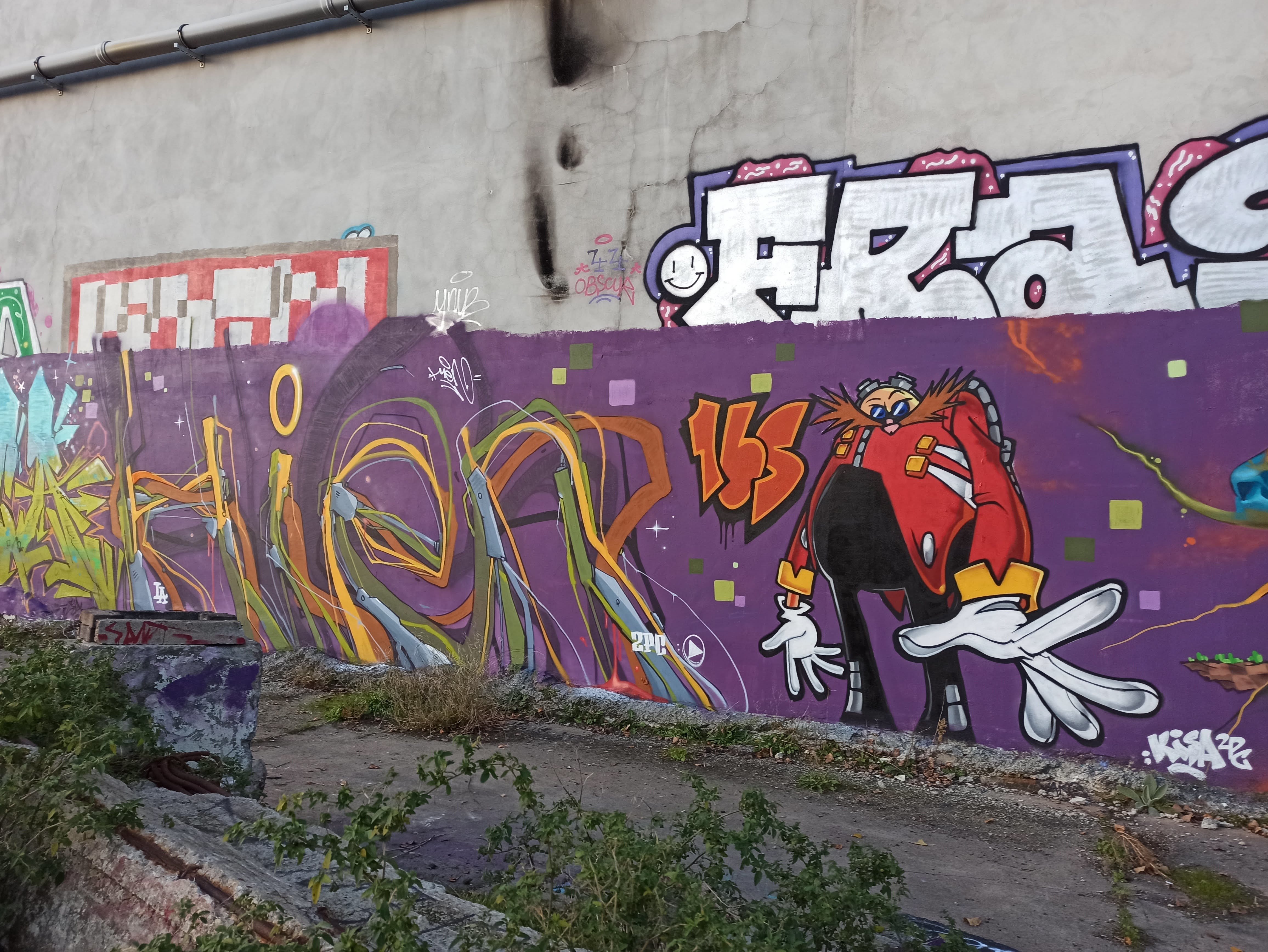 The artwork Eggman is of graffiti type. You can admire it in the city of Nantes in France and more precisely here : Usine Beghin-Say, 44200 Nantes, France.
