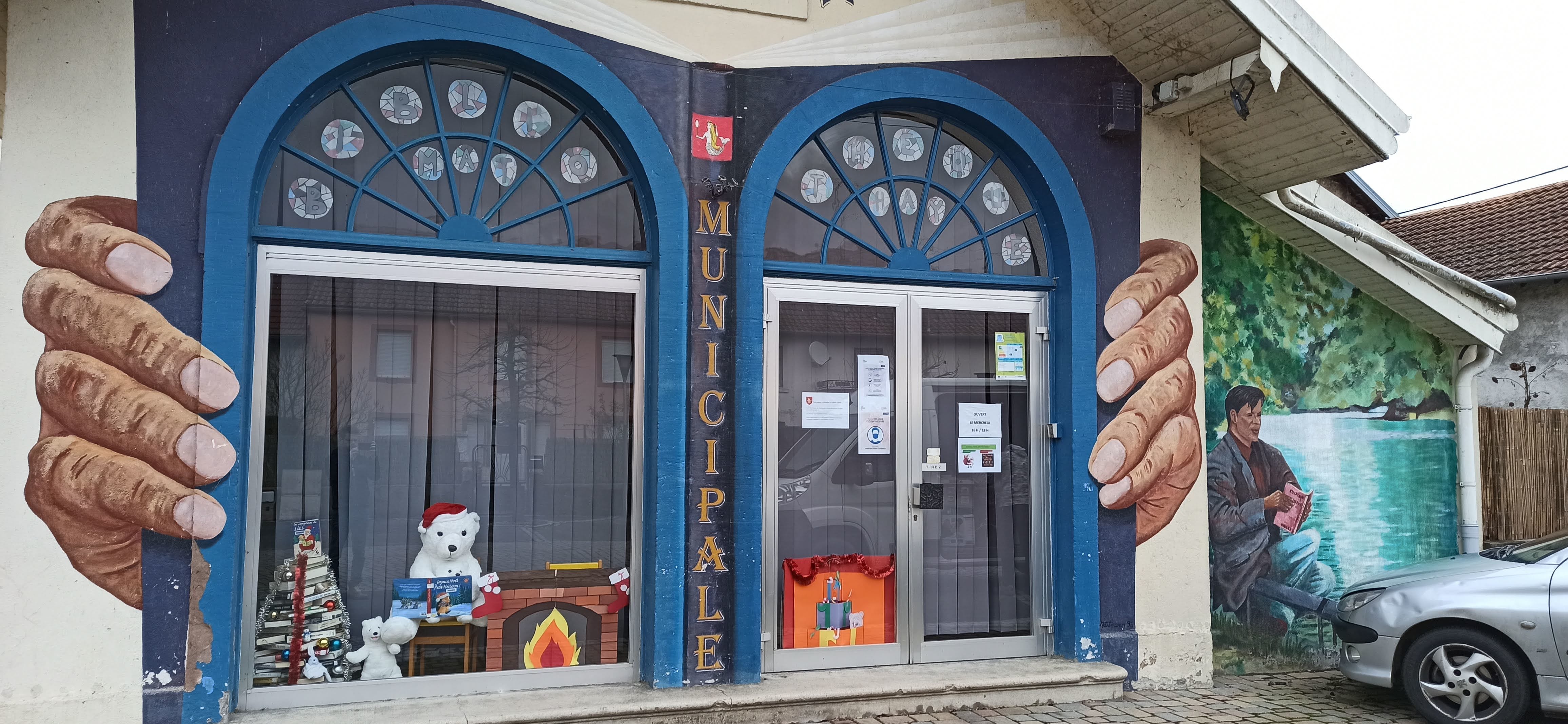 The artwork is of graffiti type. You can admire it in the city of Mathay in France and more precisely here : 2 Place de l'Église, 25700 Mathay, France.