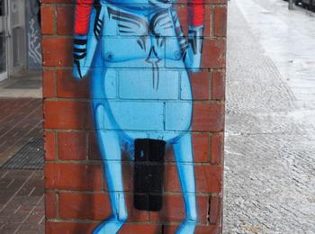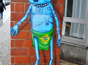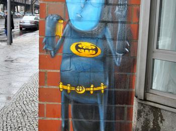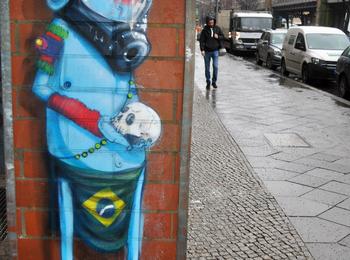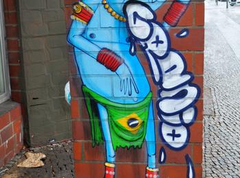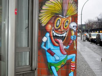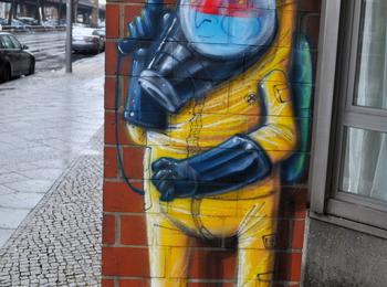 The artwork is of graffiti type. You can admire it in the city of Berlin in Germany and more precisely here : Bülowstraße 95, 10783 Berlin, Germany.