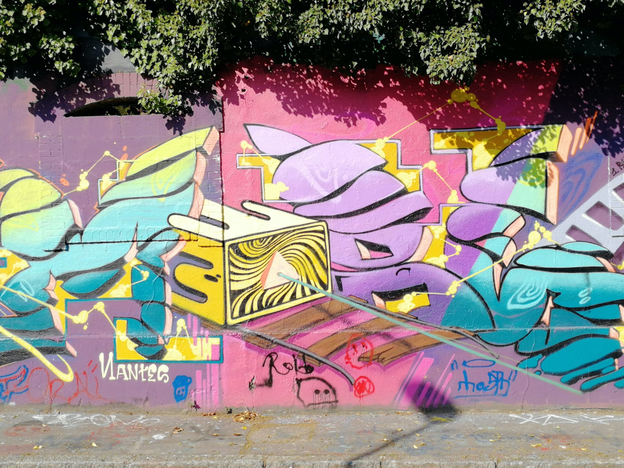 The artwork is of graffiti type. You can admire it in the city of Nantes in France and more precisely here : 3 Boulevard de Cardiff, 44100 Nantes, France.