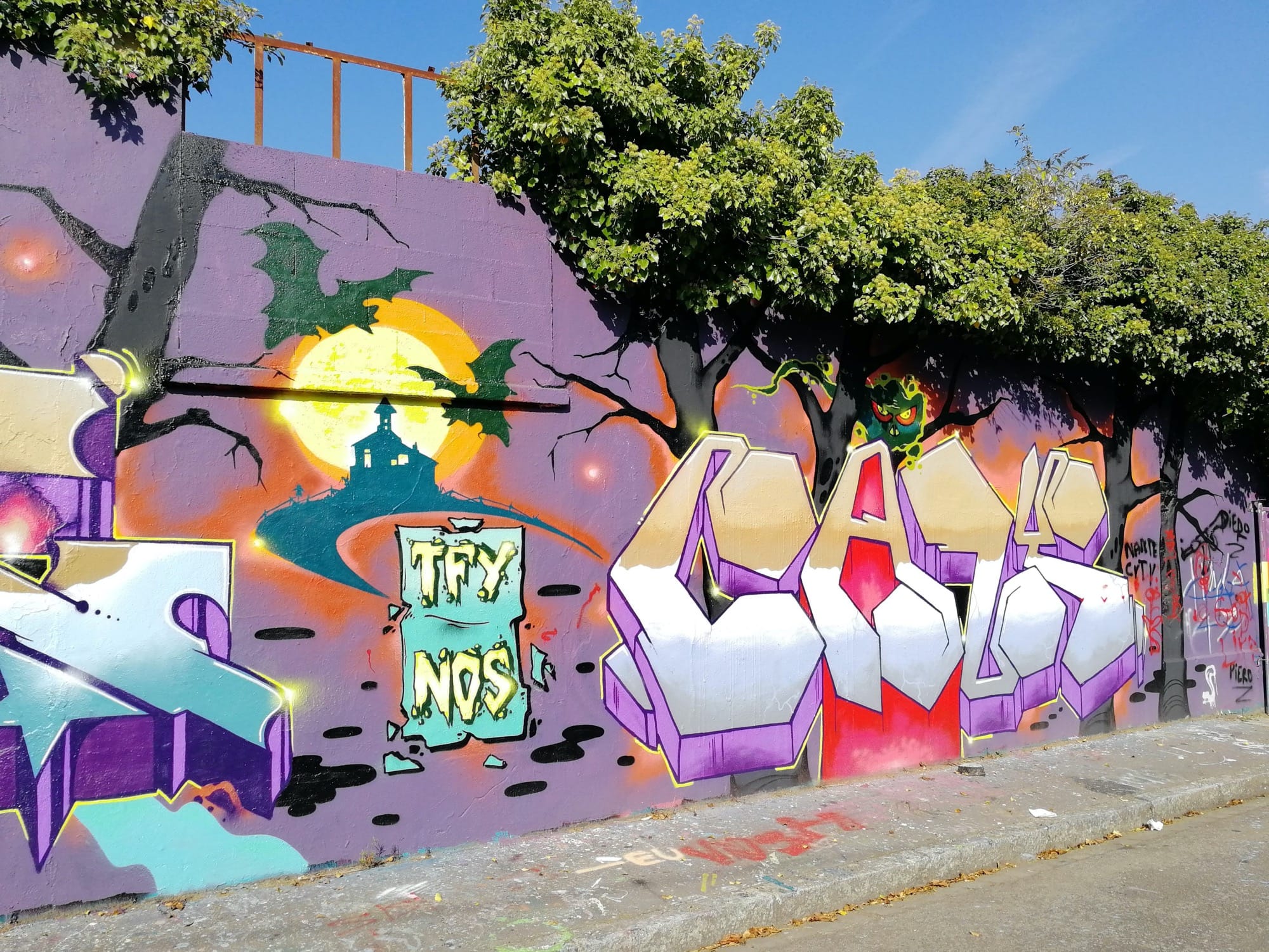 The artwork is of graffiti type. You can admire it in the city of Nantes in France and more precisely here : 7 Rue Marcel Sembat, 44100 Nantes, France.