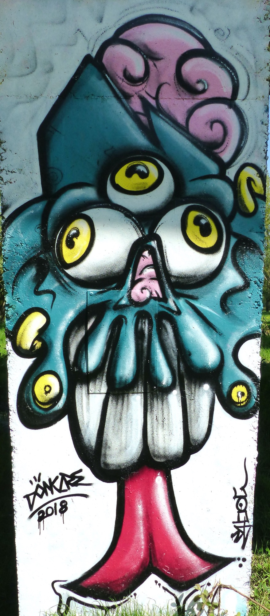 The artwork is of graffiti type. You can admire it in the city of Rezé in France and more precisely here : Boulevard Mendès France, 44400 Rezé, France.