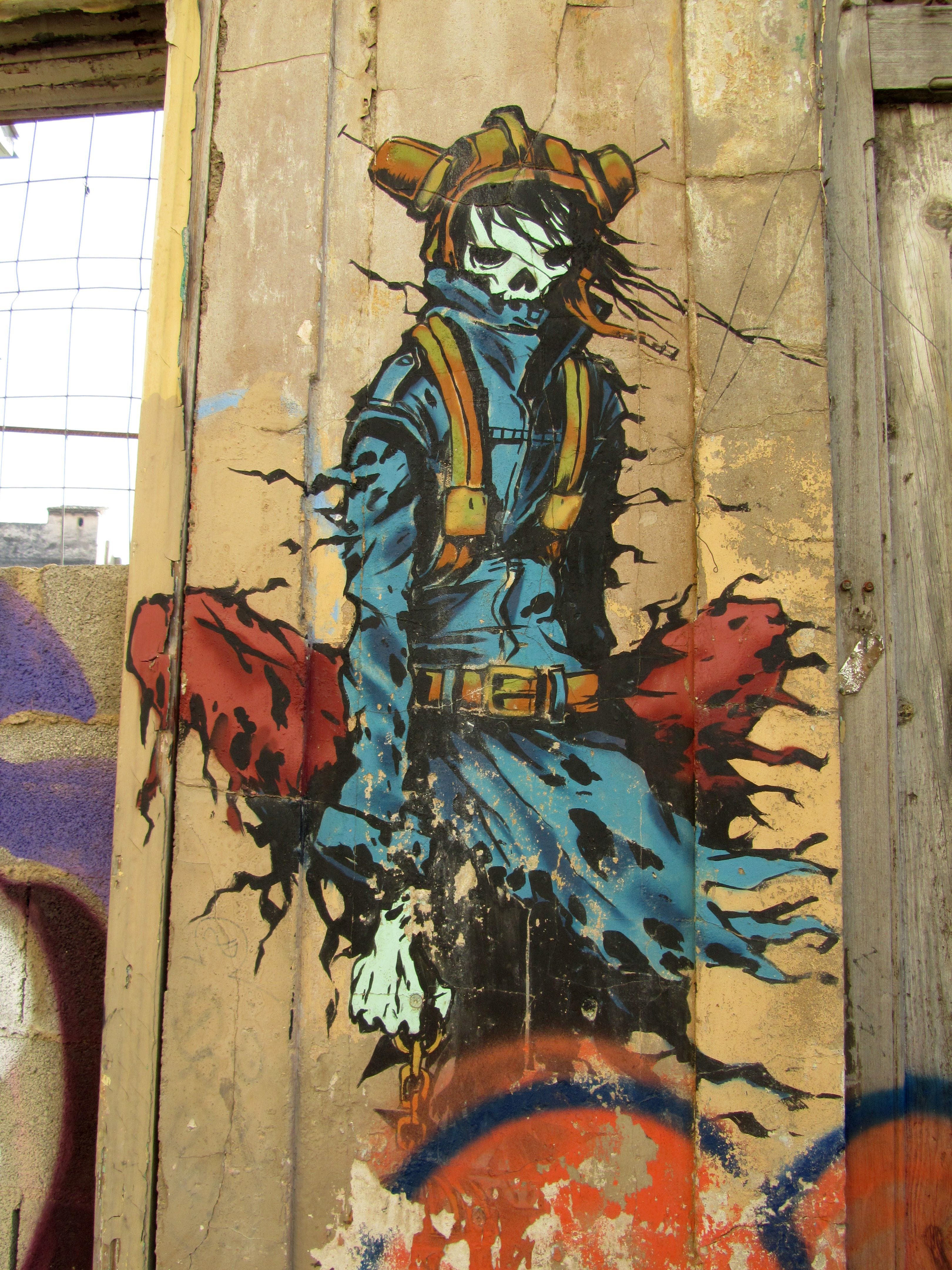 The artwork is of graffiti type. You can admire it in the city of València in Spain and more precisely here : 8 Carrer de la Carda, 46001 València, Spain.