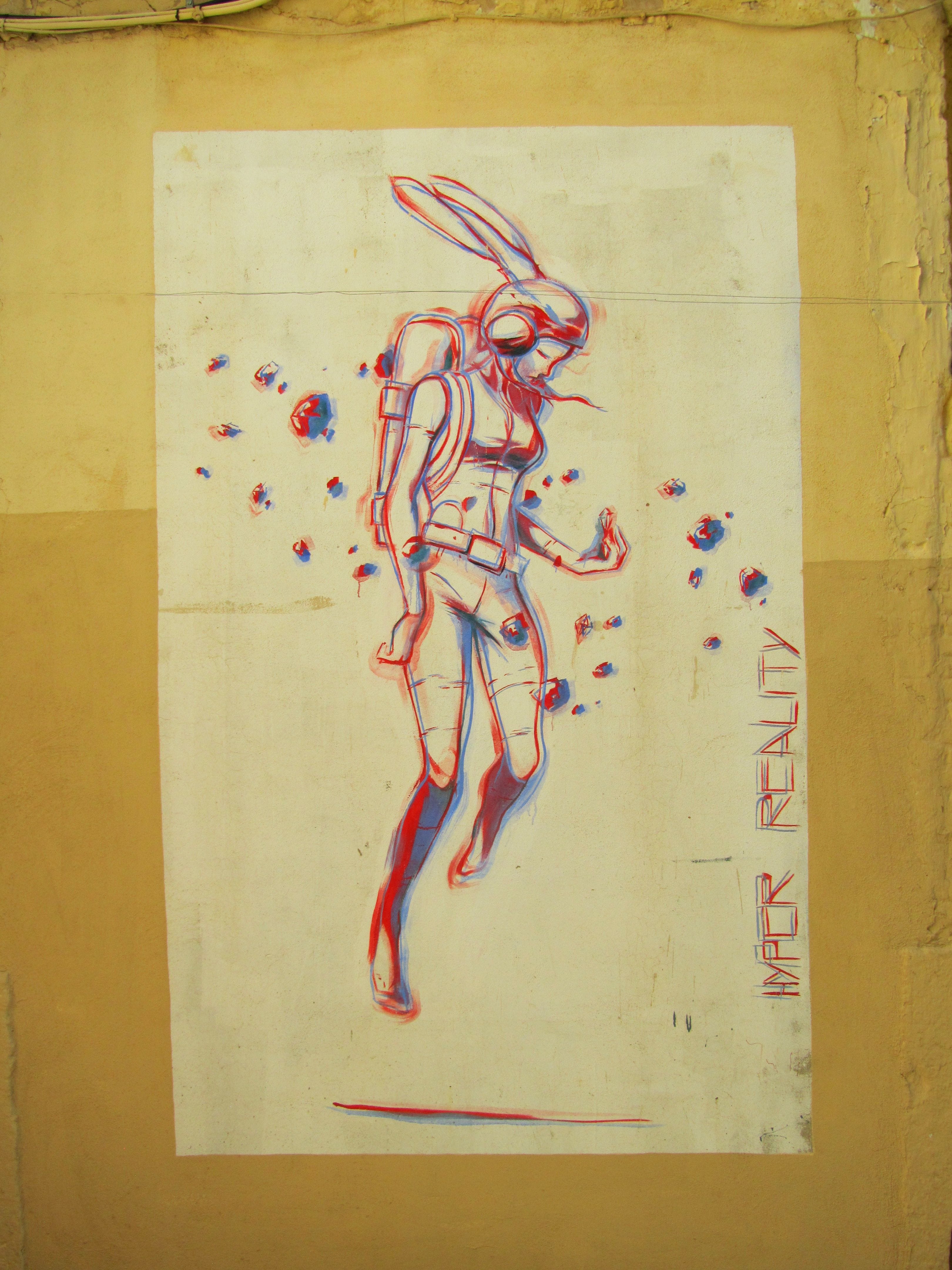 The artwork is of graffiti type. You can admire it in the city of València in Spain and more precisely here : 16 Carrer de Cañete, 46003 València, Valencia, Spain.