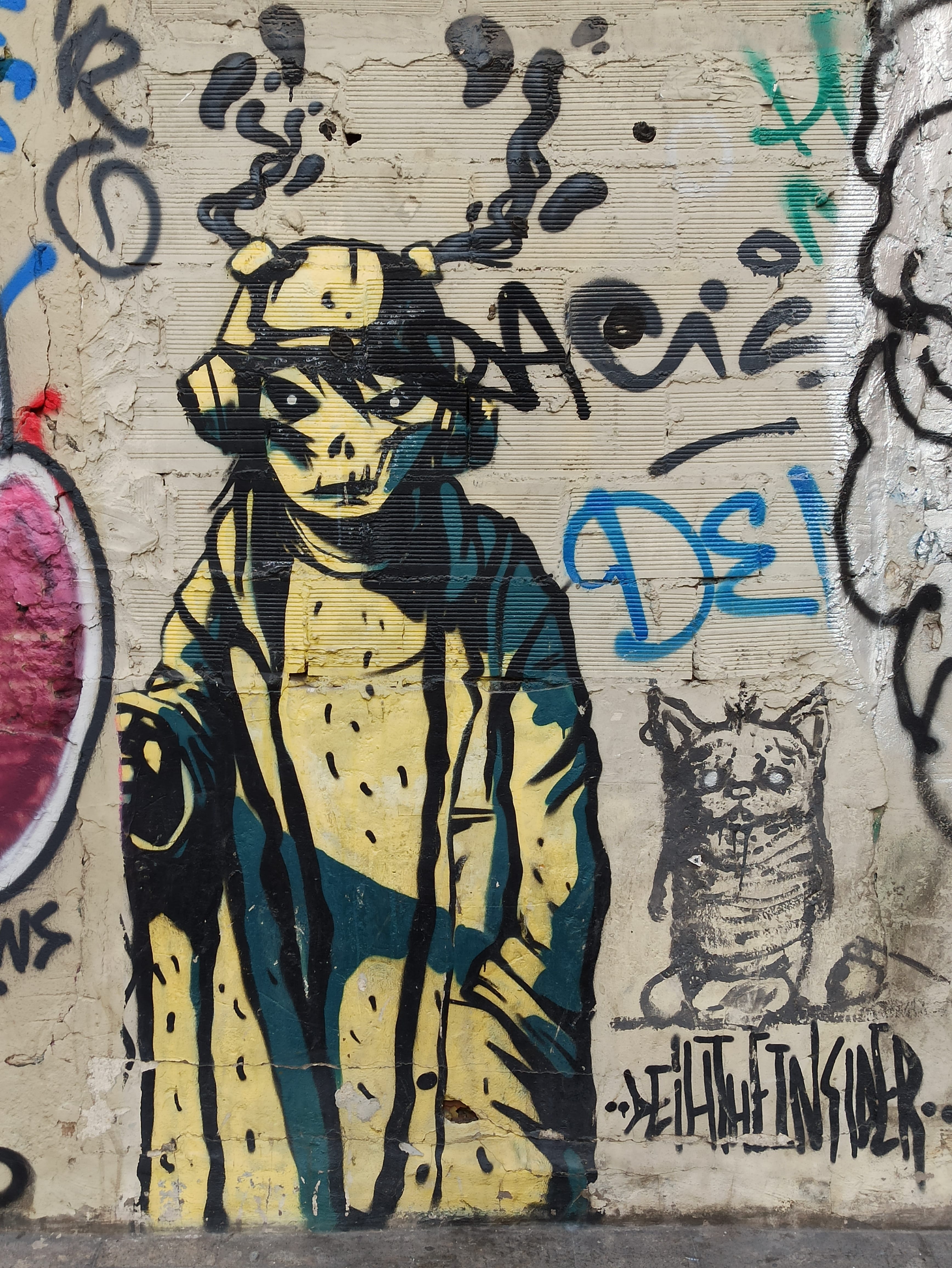 The artwork is of graffiti type. You can admire it in the city of València in Spain and more precisely here : 16 Carrer de Quart, 46001 València, Valencia, Spain.