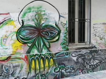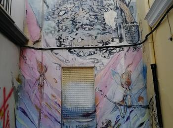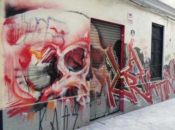 The artwork is of graffiti type. You can admire it in the city of València in Spain and more precisely here : Carrer de Ripalda, 18, 46003 València, Valencia, Spain.
