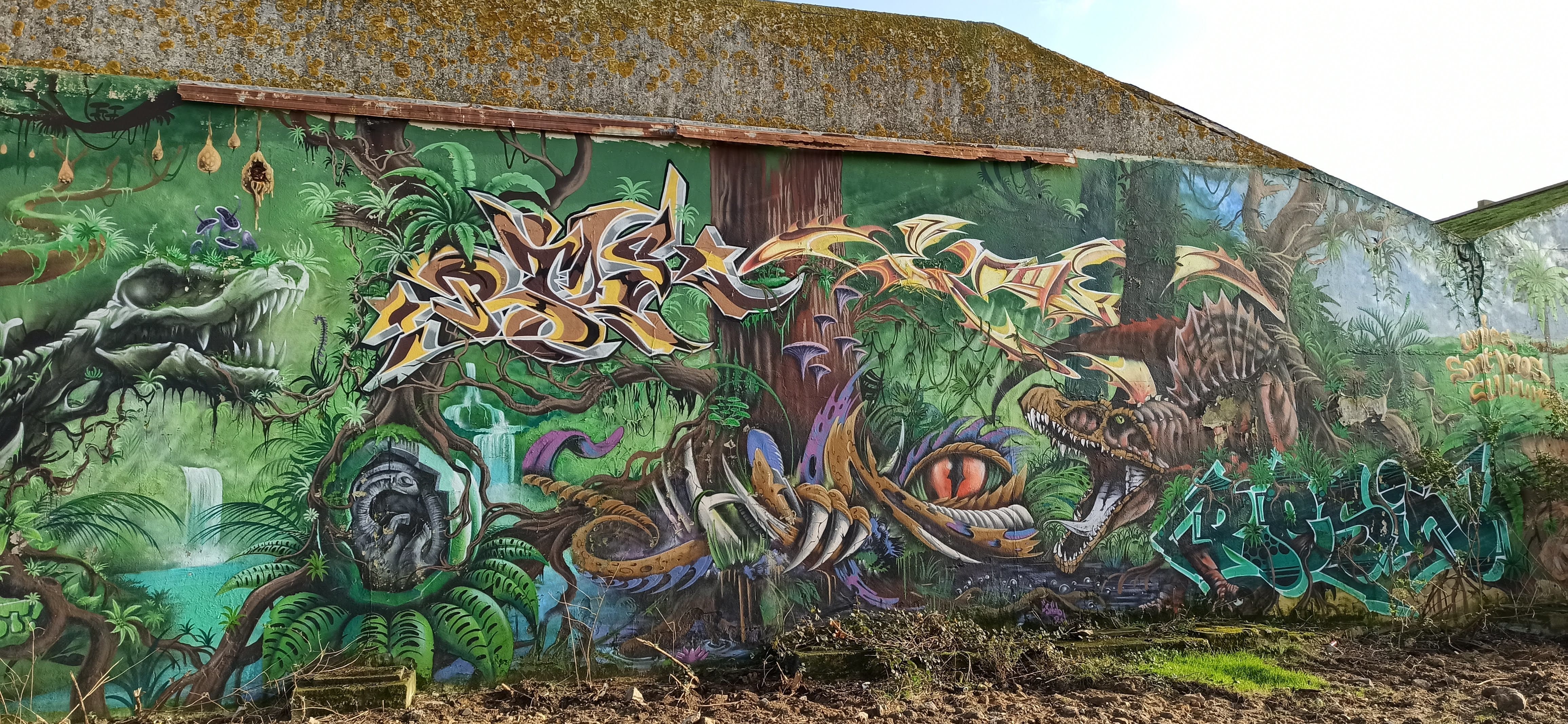 The artwork is of graffiti type. You can admire it in the city of Lorient in France and more precisely here : 19 Rue de Seignelay, 56100 Lorient, France.