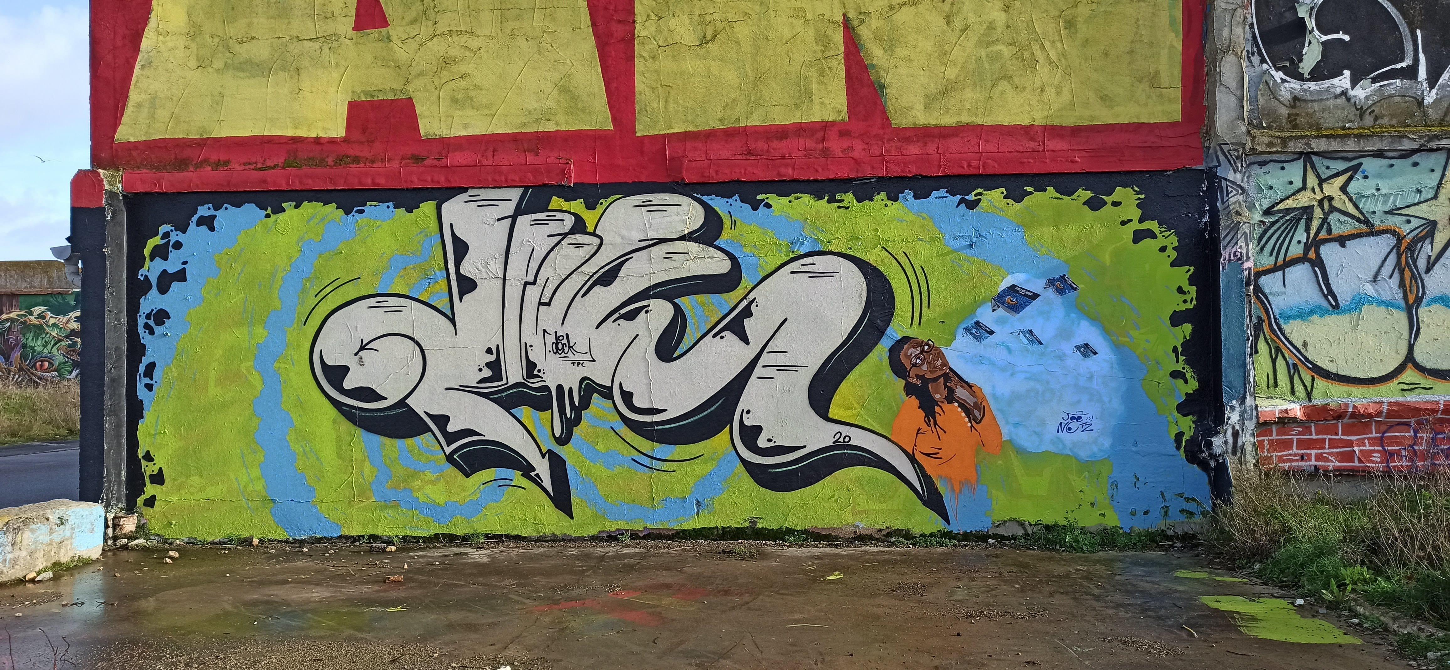 The artwork is of graffiti type. You can admire it in the city of Lorient in France and more precisely here : 11 Rue Florian Laporte, 56100 Lorient, France.