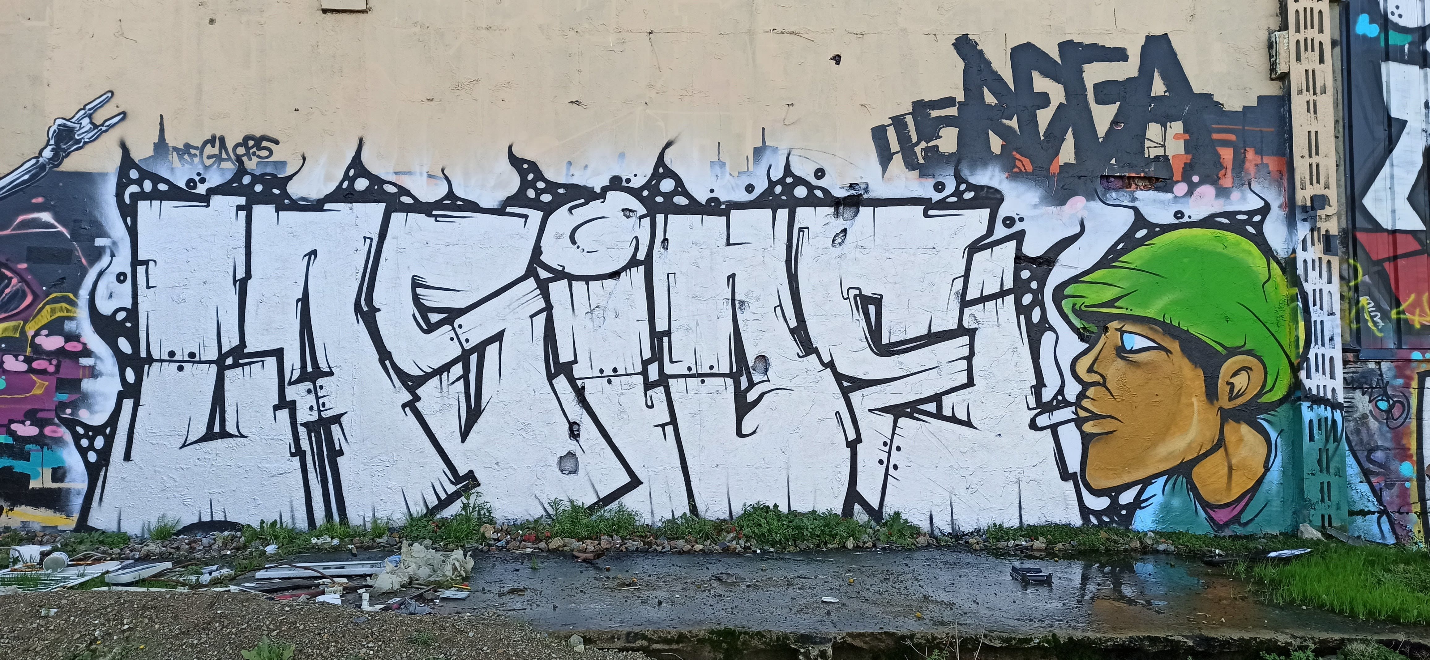 The artwork is of graffiti type. You can admire it in the city of Lorient in France and more precisely here : 20 Rue du Bout du Monde, 56100 Lorient, France.