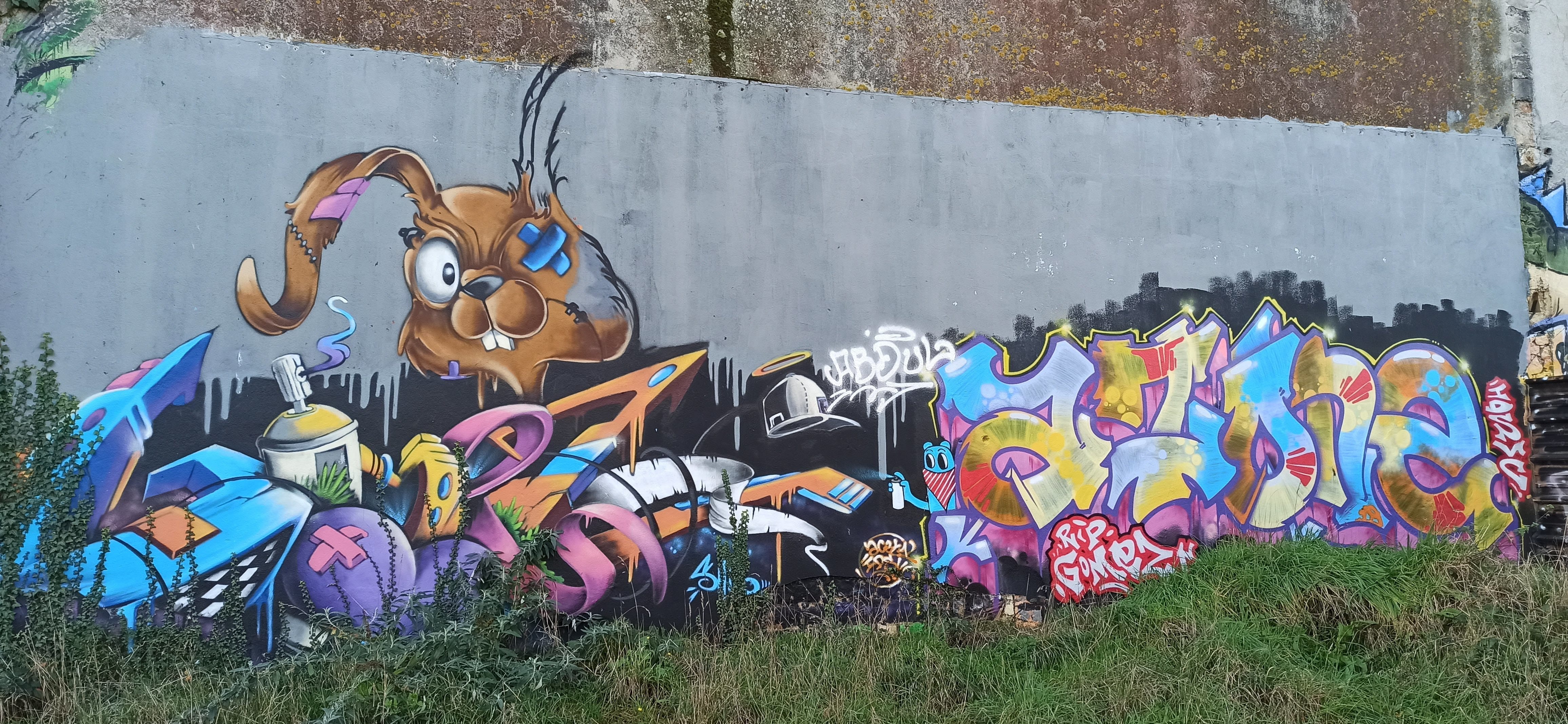 The artwork is of graffiti type. You can admire it in the city of Lorient in France and more precisely here : 3 Rue de Seignelay, 56100 Lorient, France.